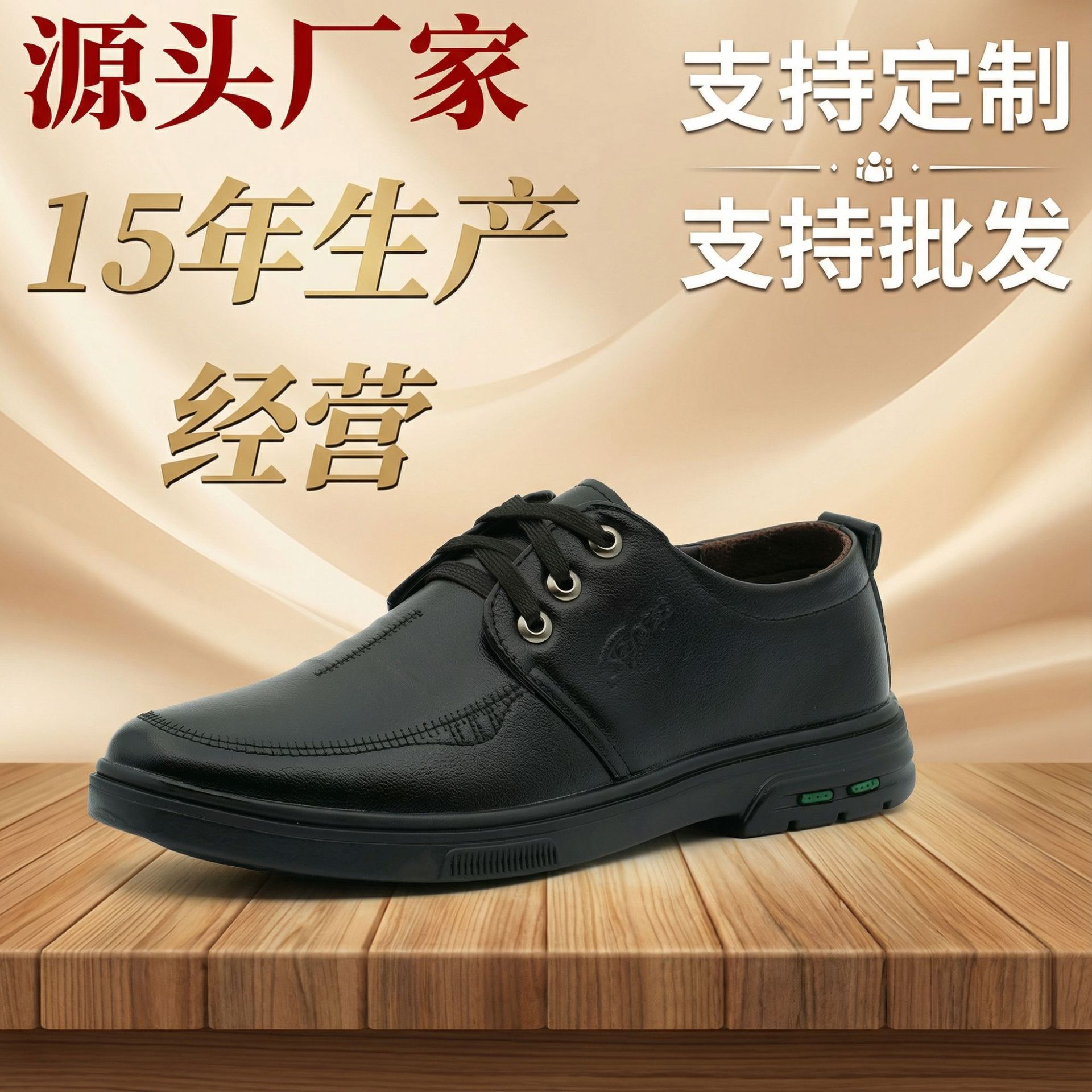 春秋2025新型皮男靴軟底軟面円頭カジュアル靴男性中年カジュアル靴男性