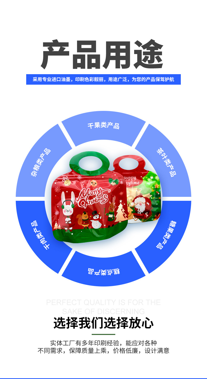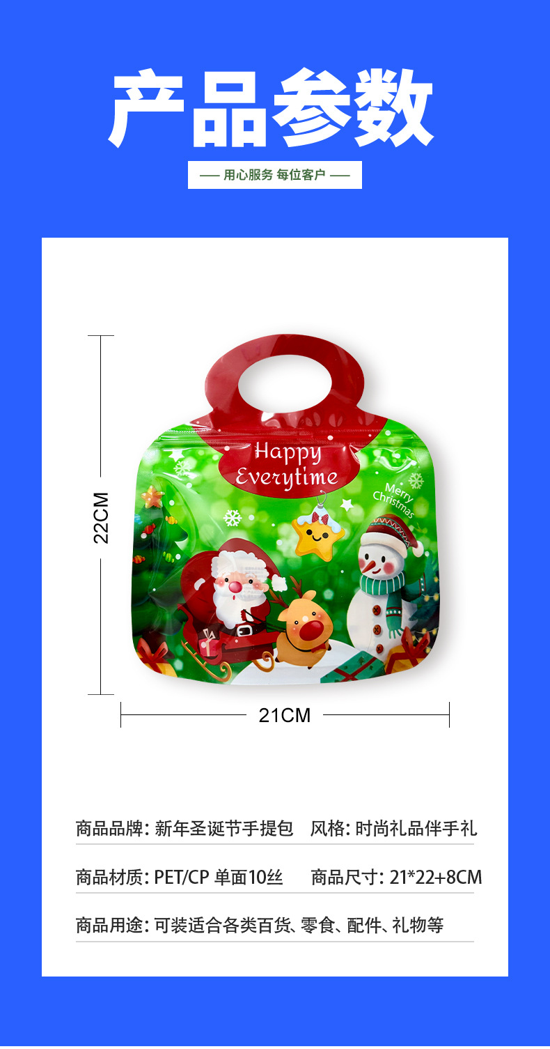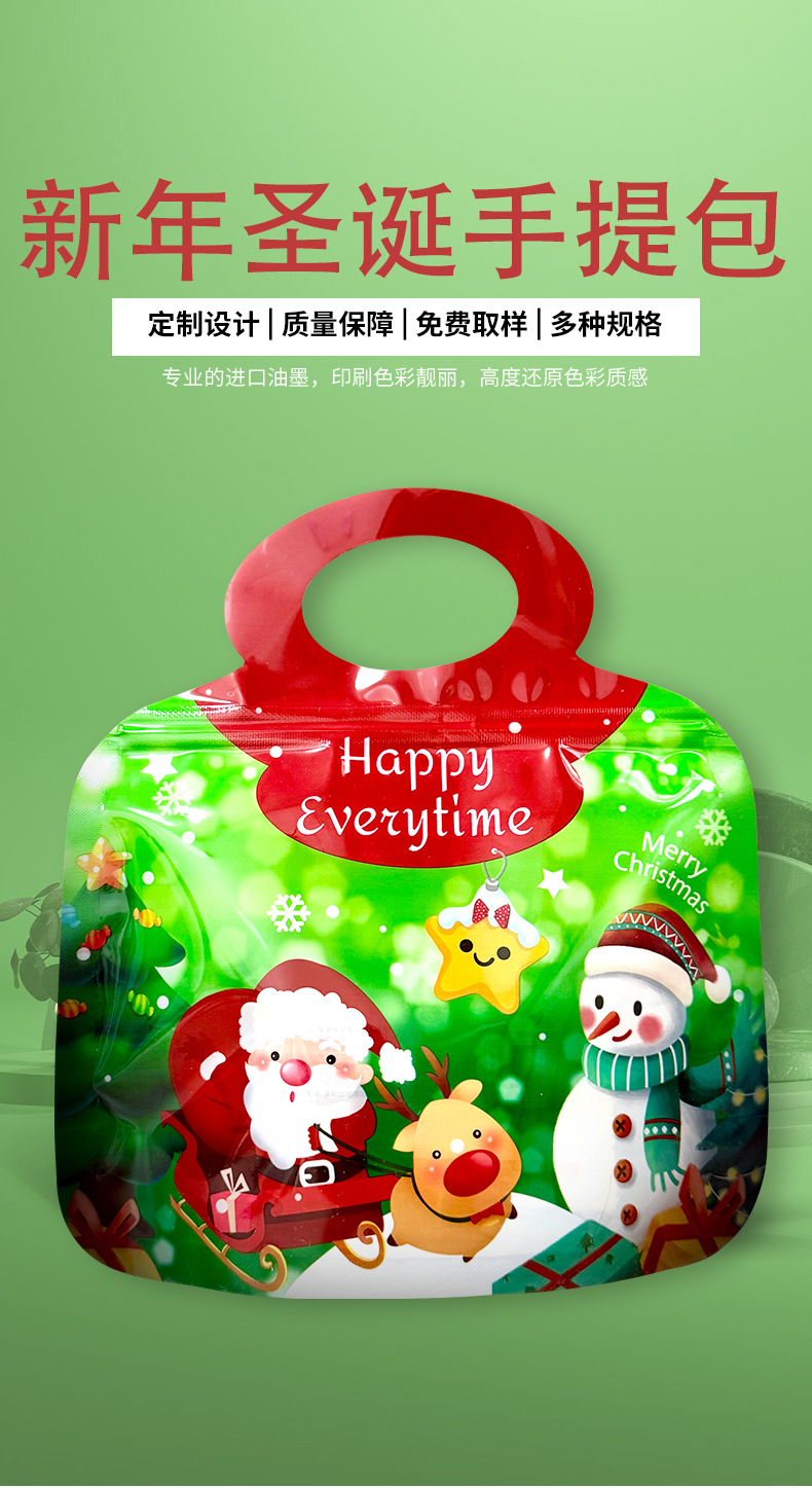 新年圣诞节主题可爱手提食品包装袋小吃零食自立自封袋食品零食袋