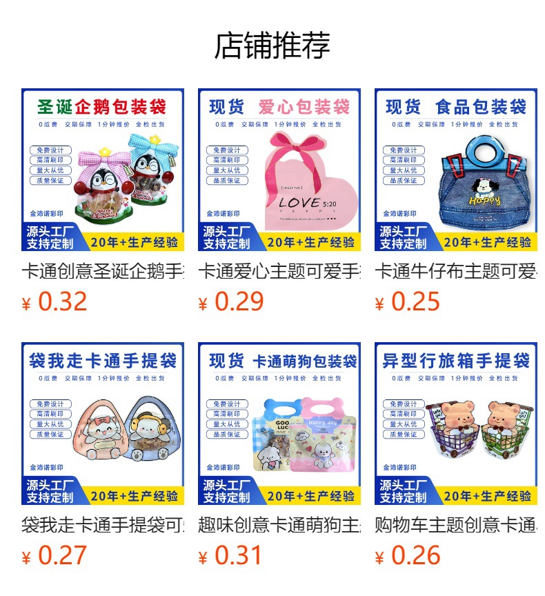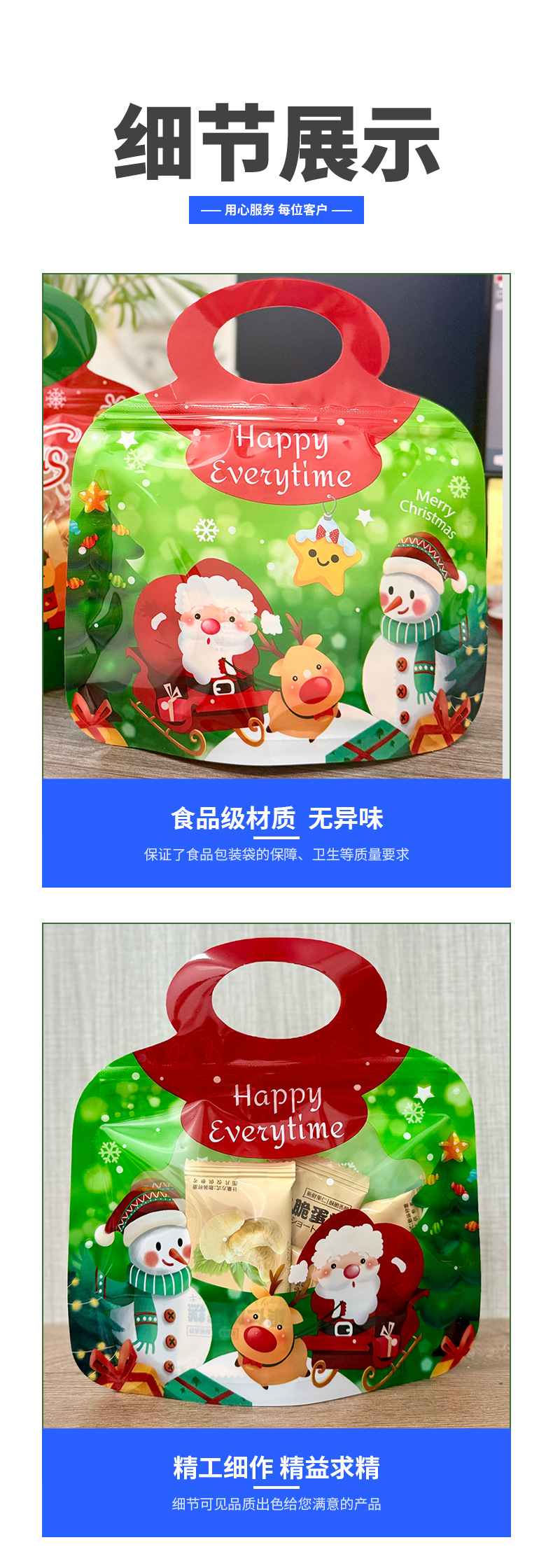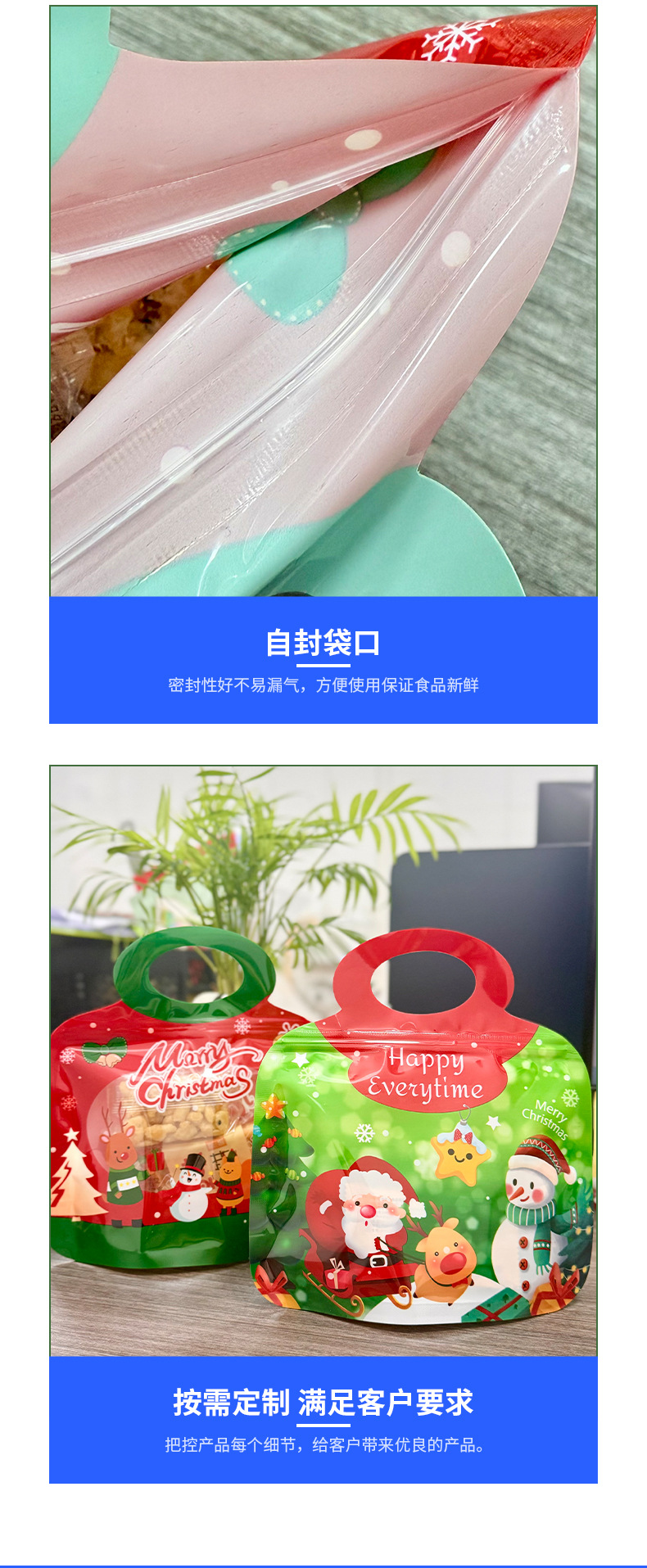 新年圣诞节主题可爱手提食品包装袋小吃零食自立自封袋食品零食袋