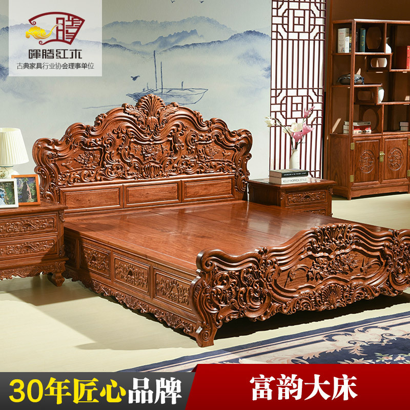 Qiangong ベッド無垢材シェルフベッド明清古典的な大きなベッドハリネズミローズウッドウェディングベッドローズウッドダブルベッド