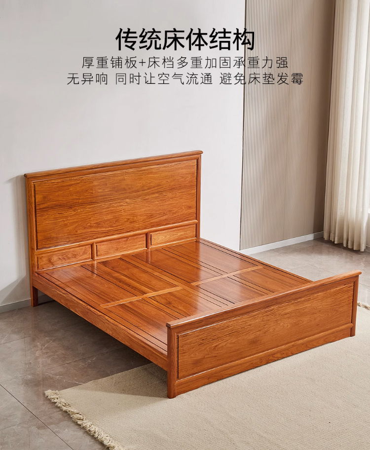 床缅甸花梨木双人床大果紫檀中式卧室缅花家具1.8米实木大床