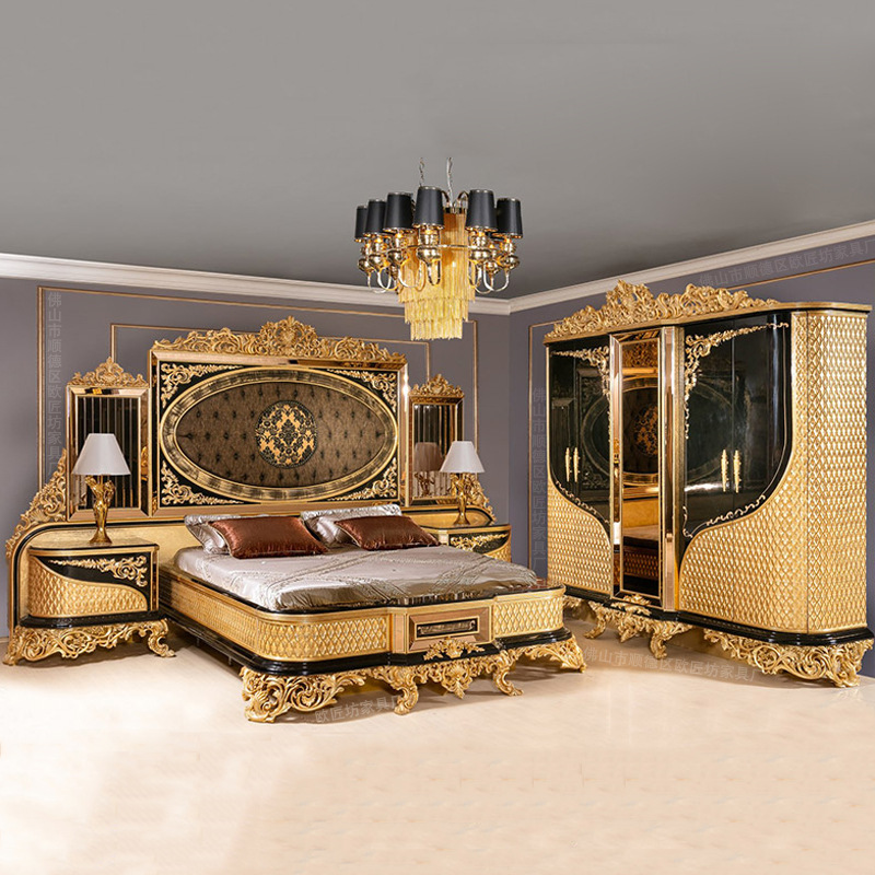 フランス式布芸ベッド実木彫刻ヨーロッパ式布芸ツインベッドフランス式四門たんす金箔化粧台別荘ベッド