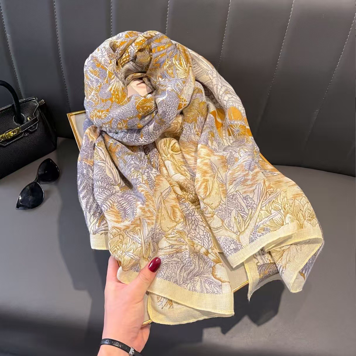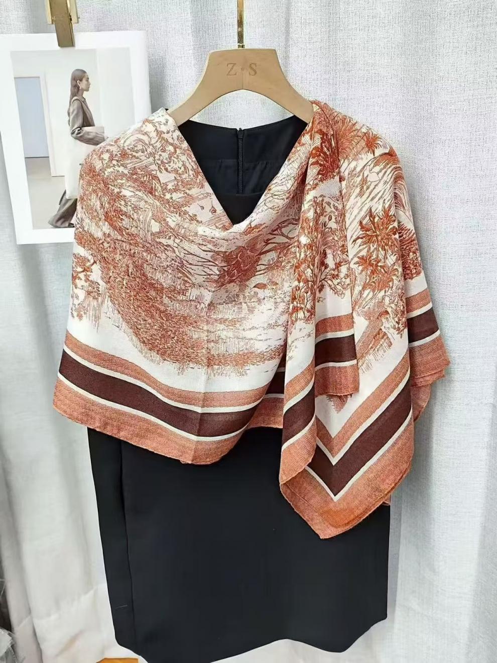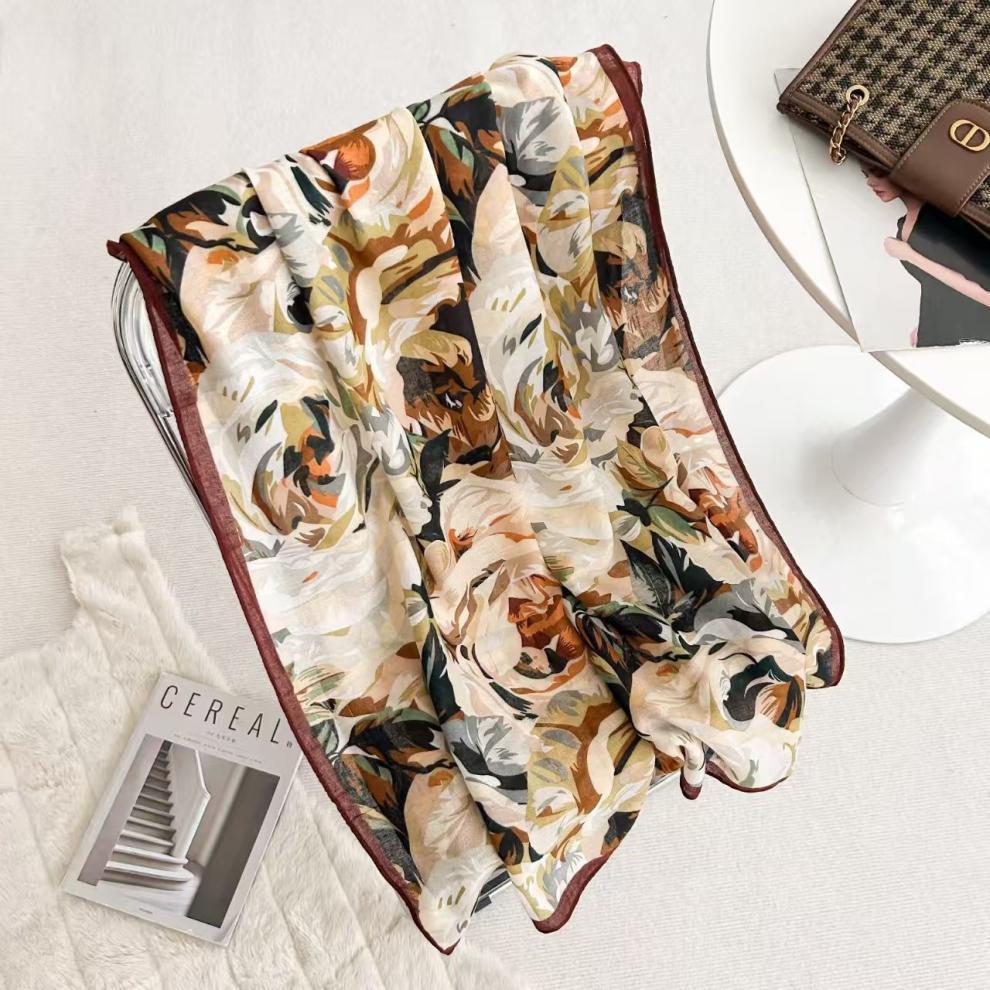 2025 コットンとリネンのスカーフ、シルクスカーフ、外国貿易スカーフ、プリントされた気質ショール、多用途の写真装飾、高級感