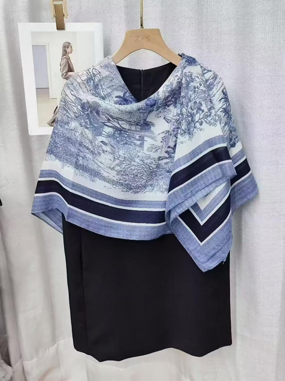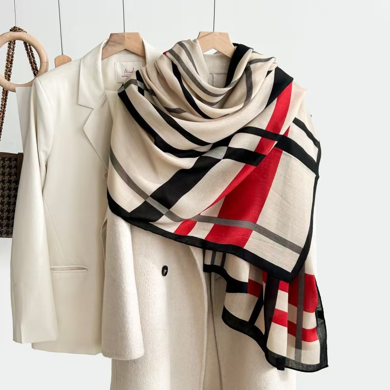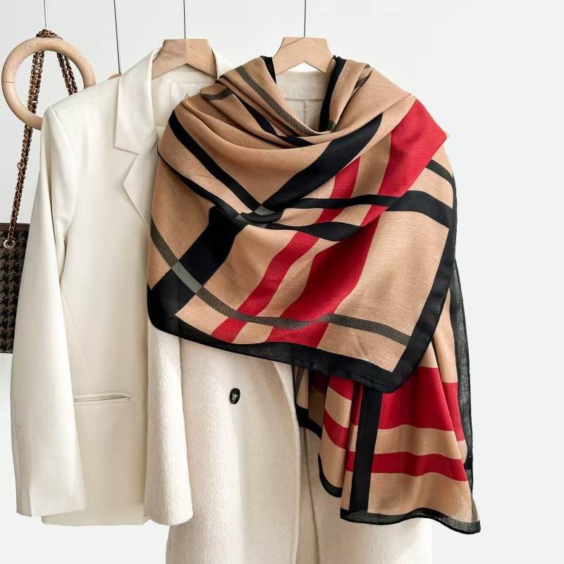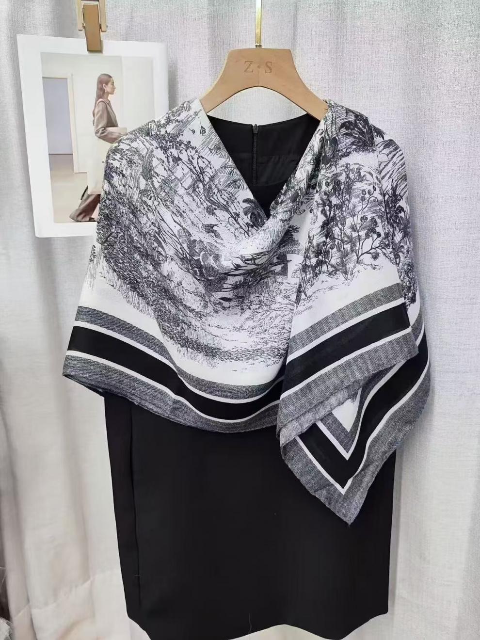 2024秋冬新作 ミニマリストスタイル 多用途 インス風 幾何学模様 ロングスカーフ エレガントな日焼け止めシルクスカーフ