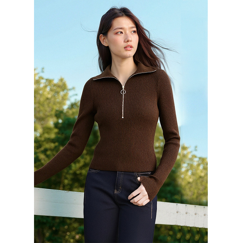 【雅*定单】2025年秋冬新品100绵羊毛设计感修身半高领拉链针织衫