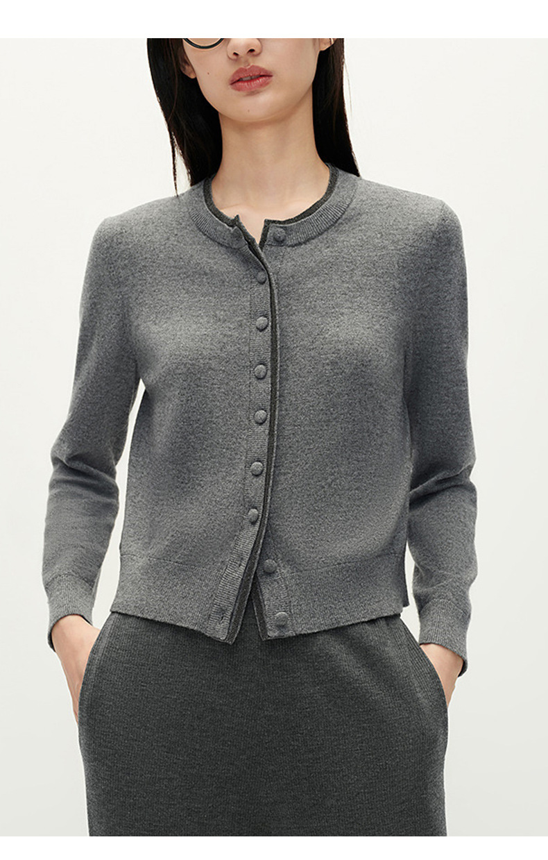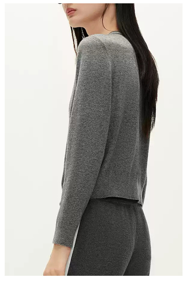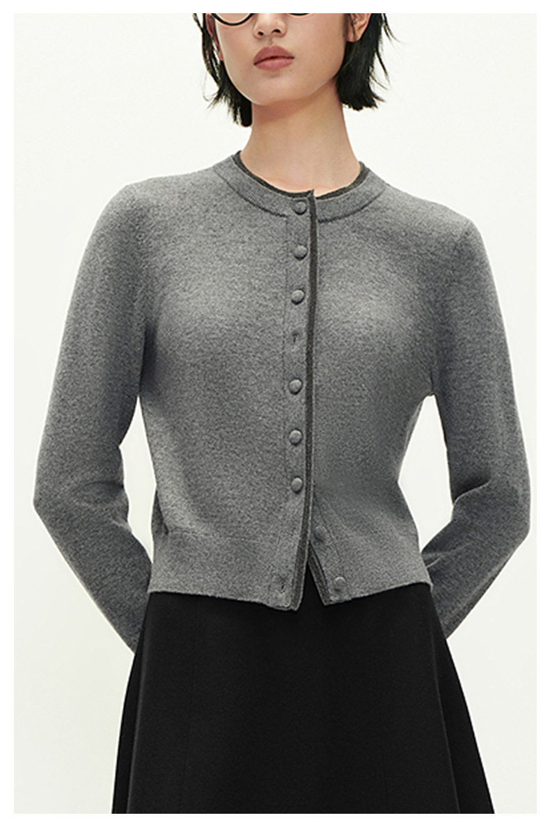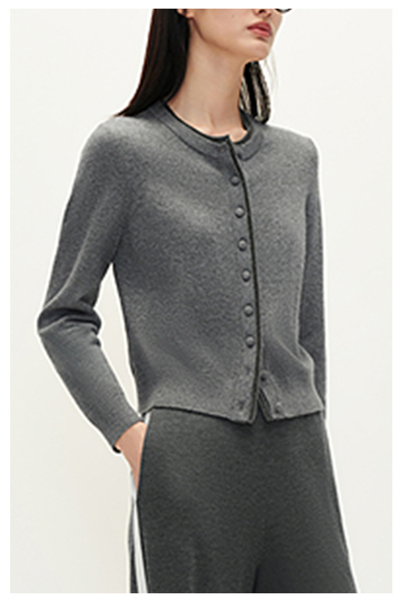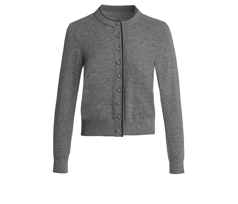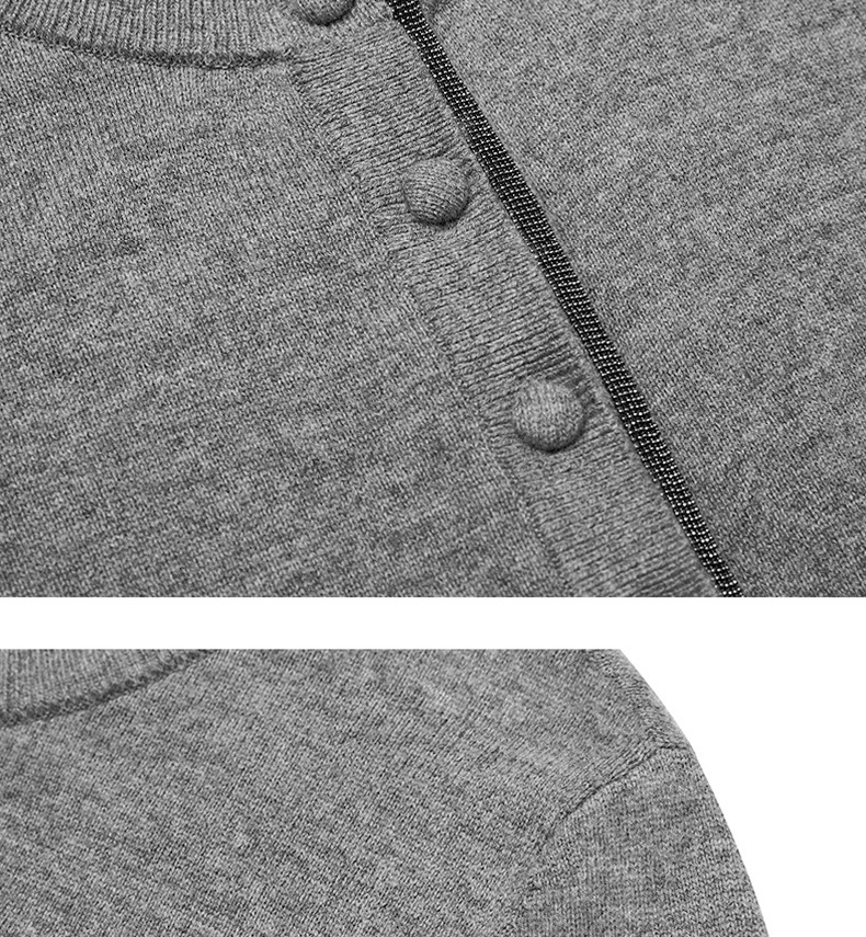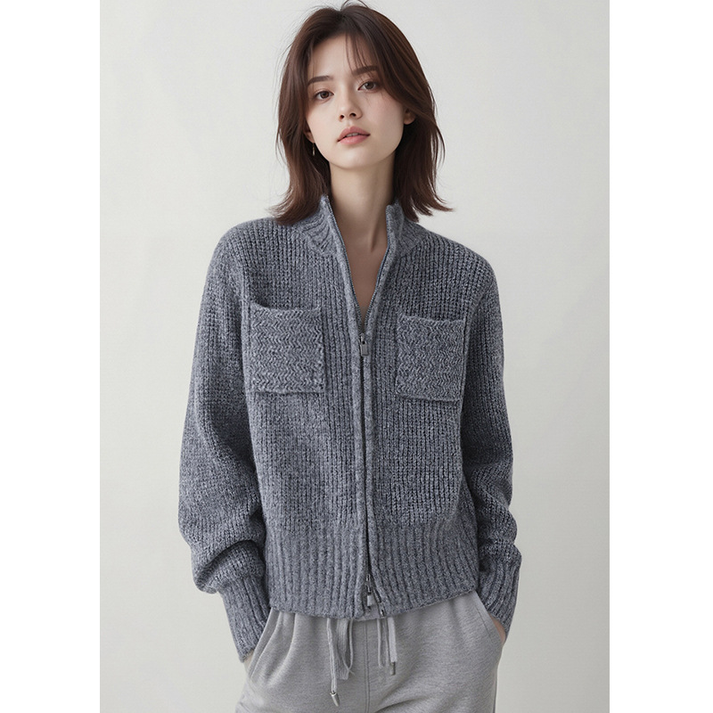 2025年秋冬新款山羊绒灰色针织开衫女小个子气质时尚高领长袖上衣