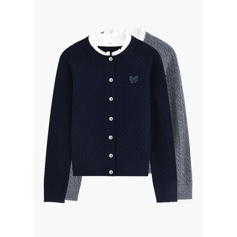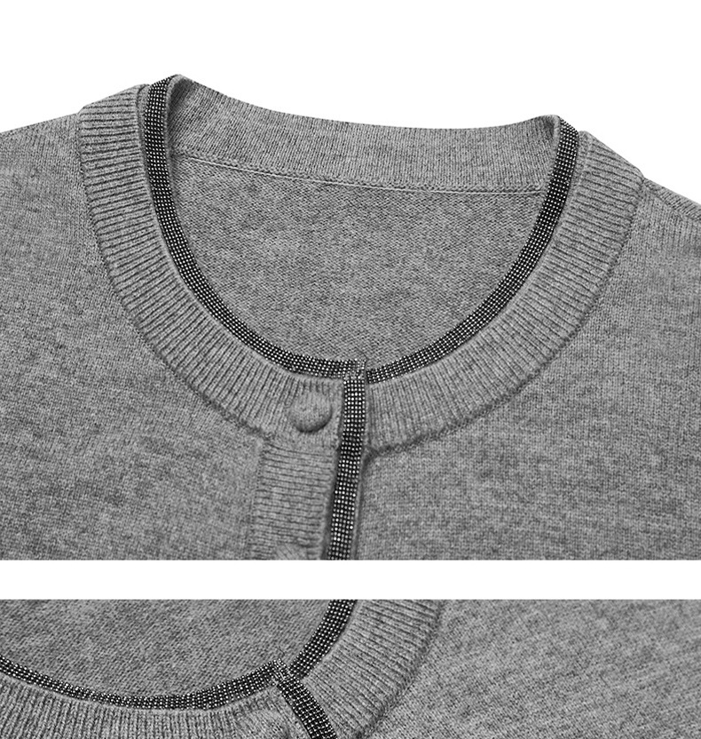 グレース釘珠丸首長袖ウールニット女性早春新2025年単列ボタン韓国系ファッション上着
