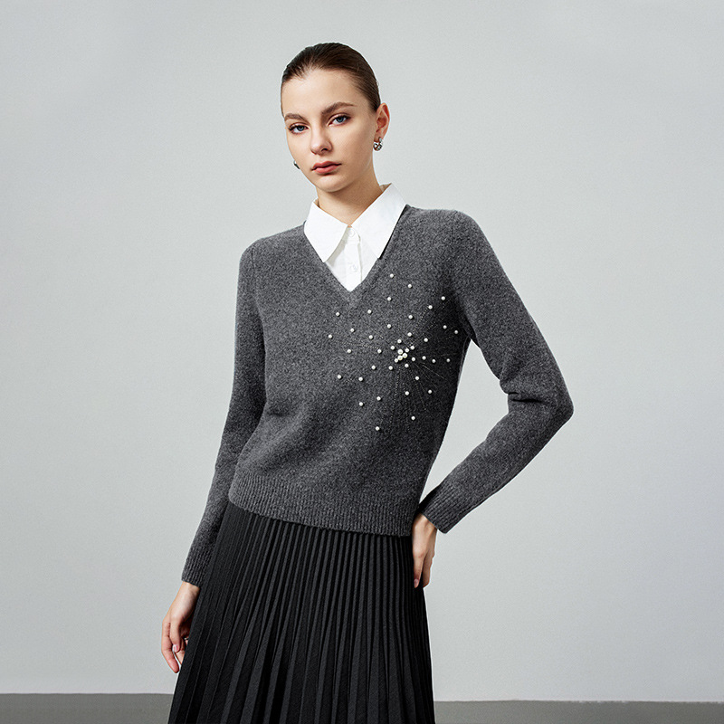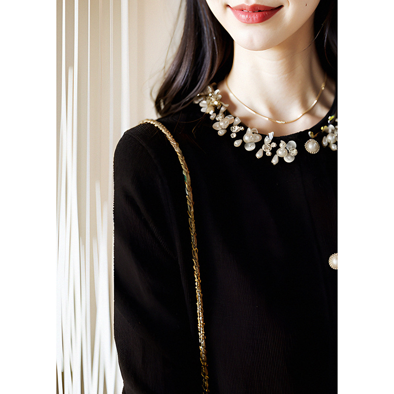フランスのデザイン感が優雅で、ビーズのセーターが女性です。