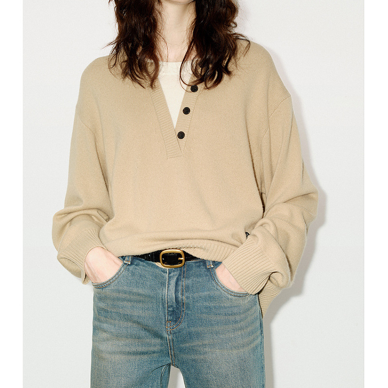 【MC定单】2025秋冬季新款毛衣绵羊毛山羊绒假两件亨利领针织衫女