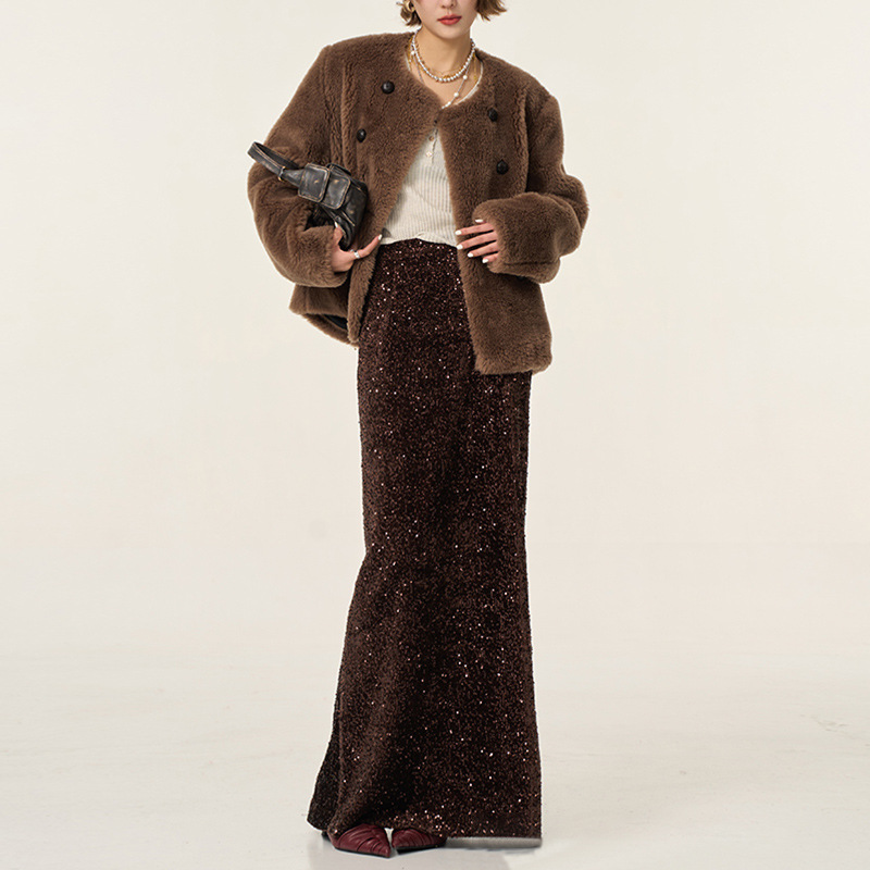 秋冬新作2024気質名媛半身スカート女子年会高級感重工スパンコールストレートロングスカート