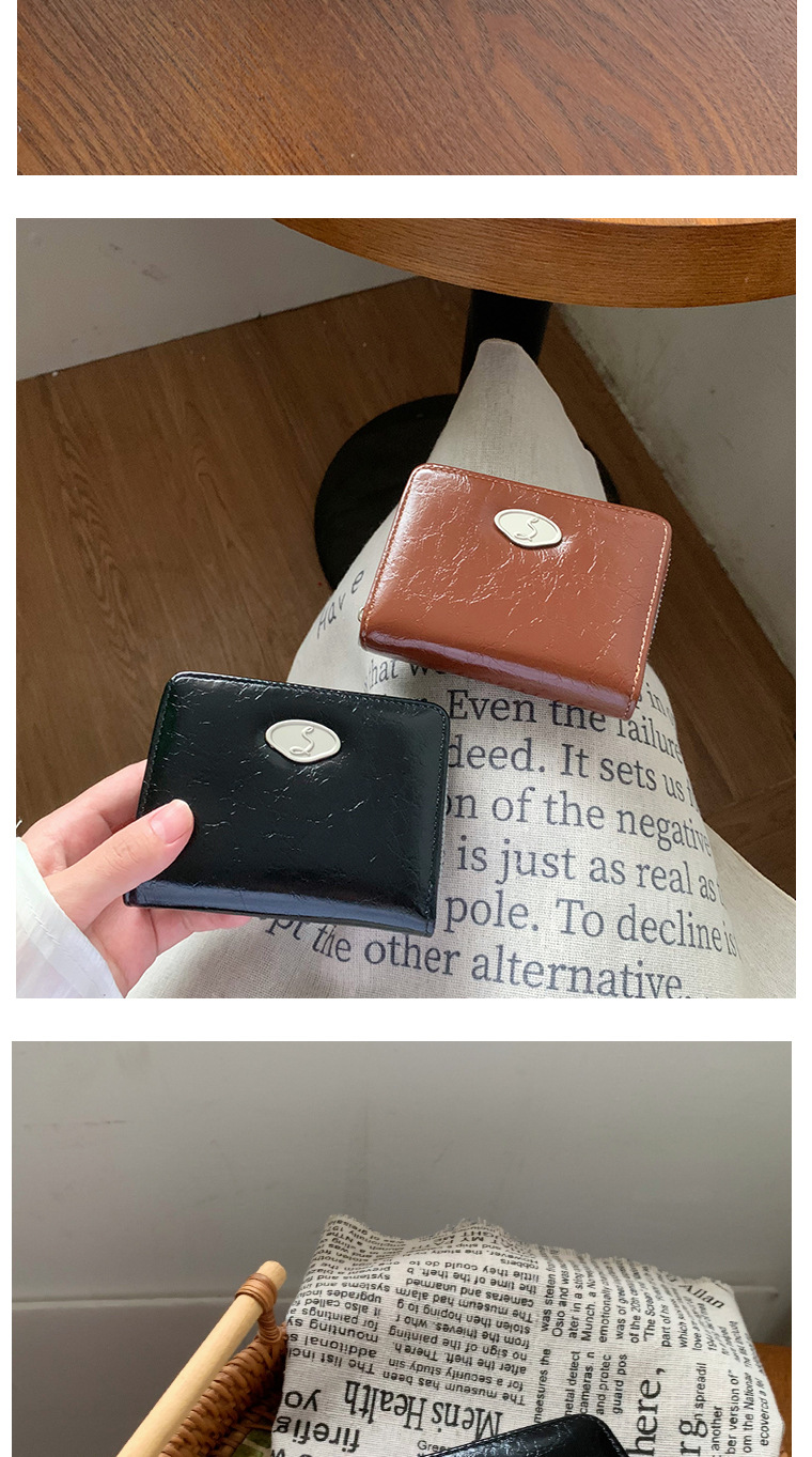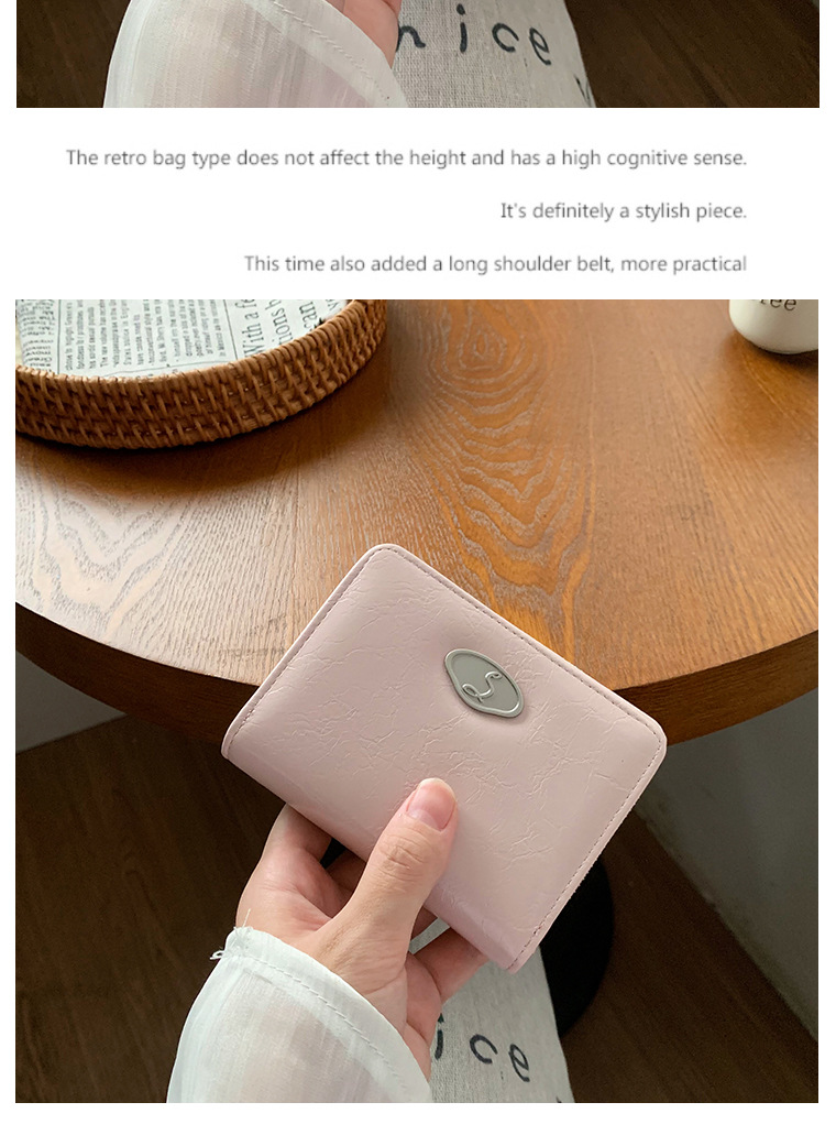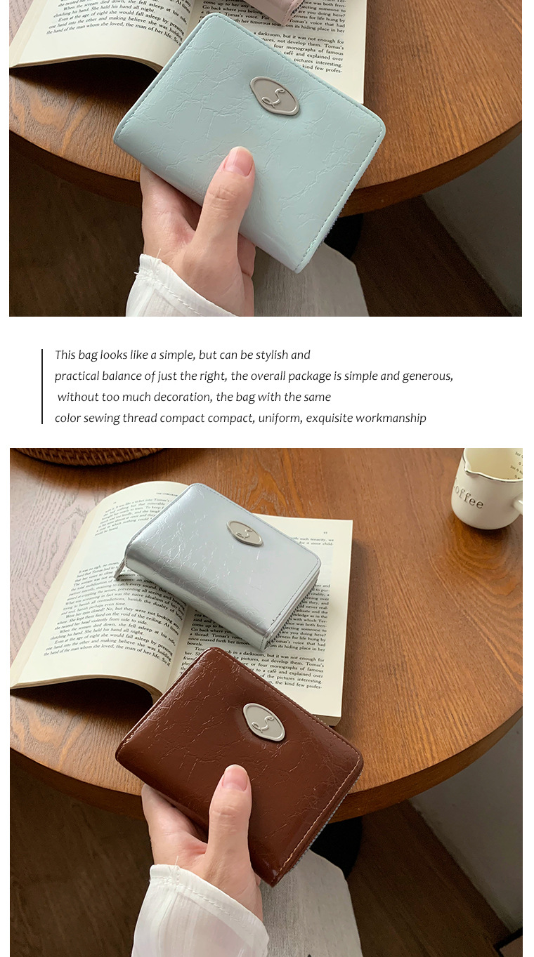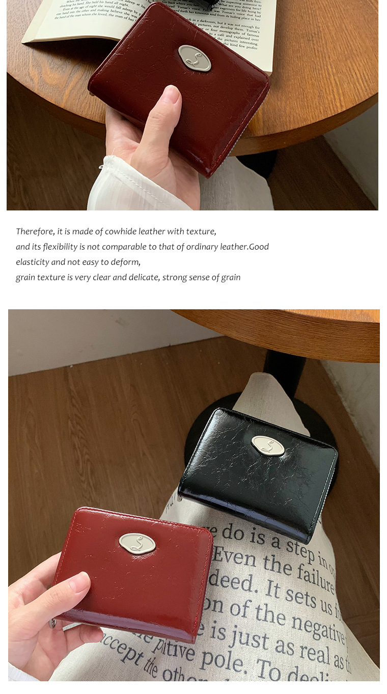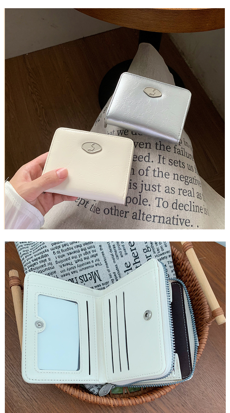 信封钱包~褶皱纹路女士钱包简约两折可折叠拉链皮革钱夹财布简约