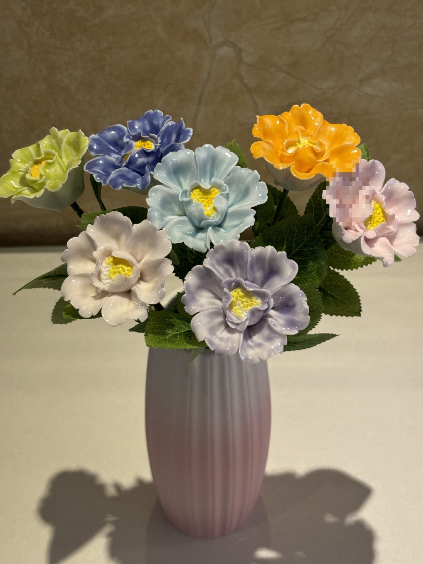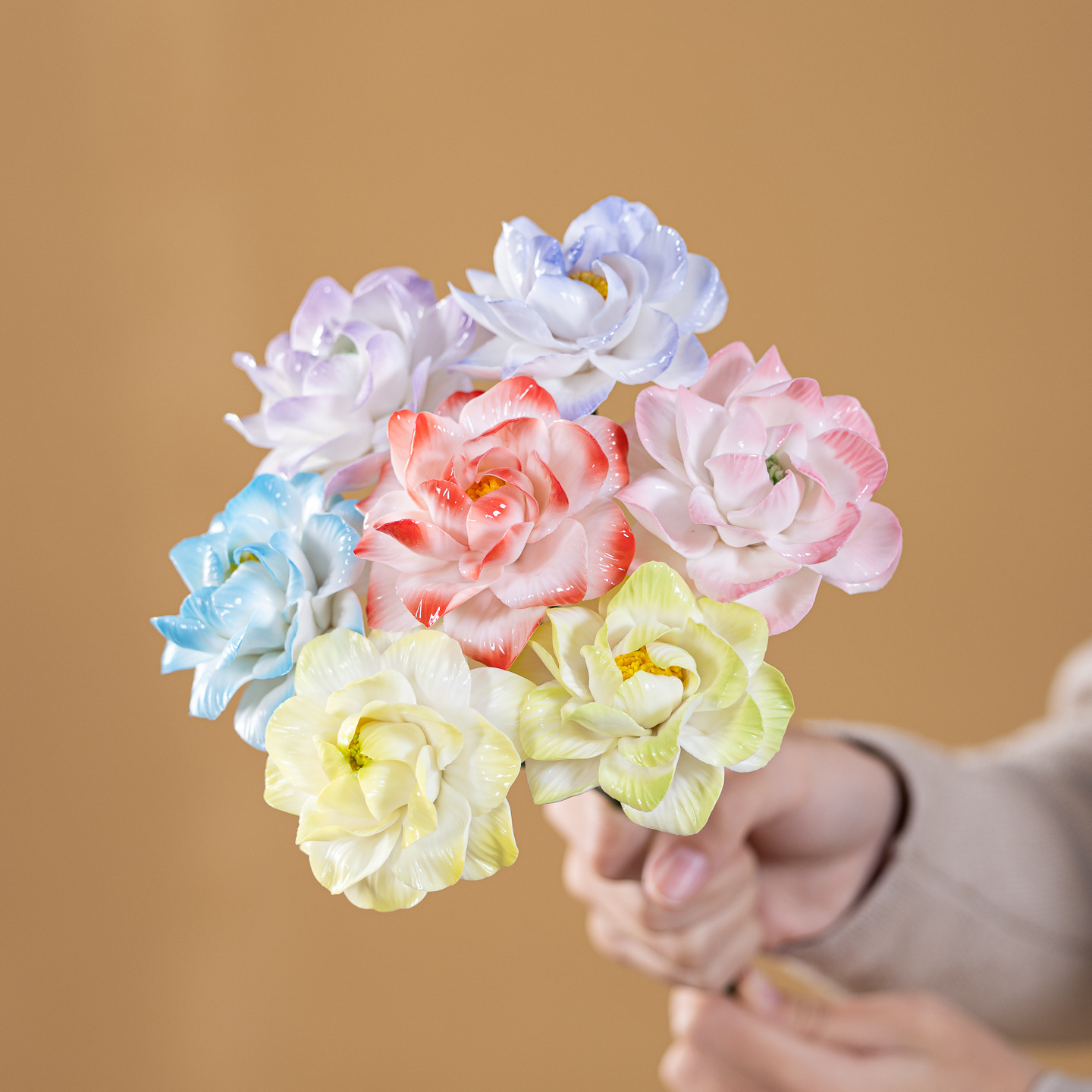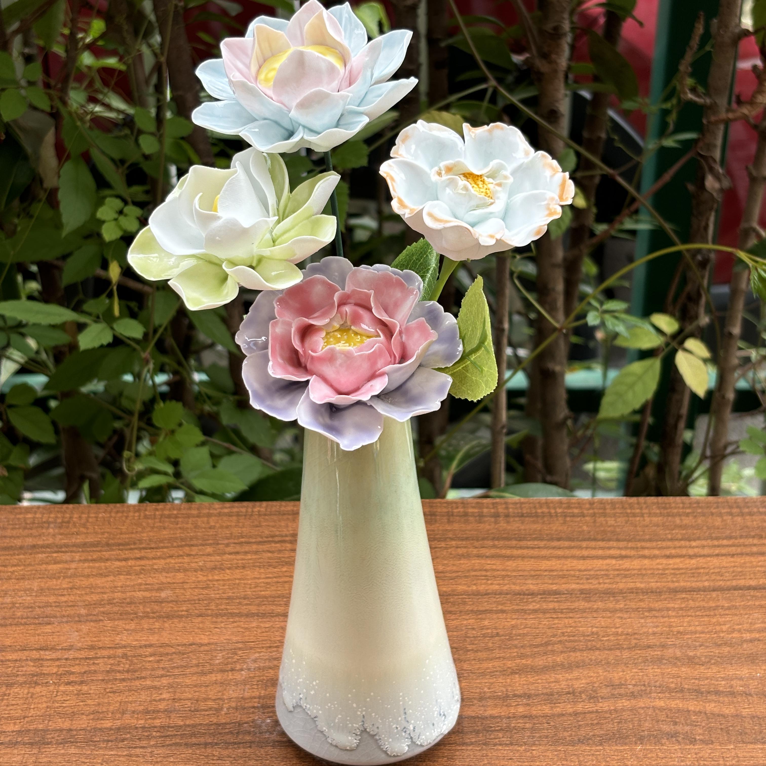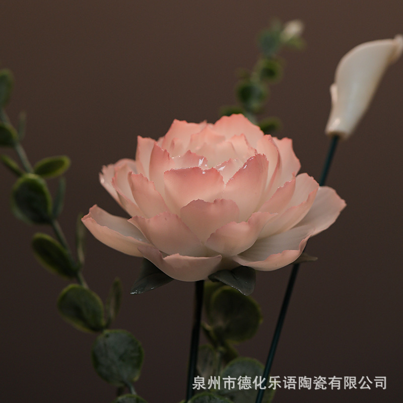 非遗手工陶瓷渐变牡丹花仿真陶瓷花束家居摆件节日送礼情人节礼物