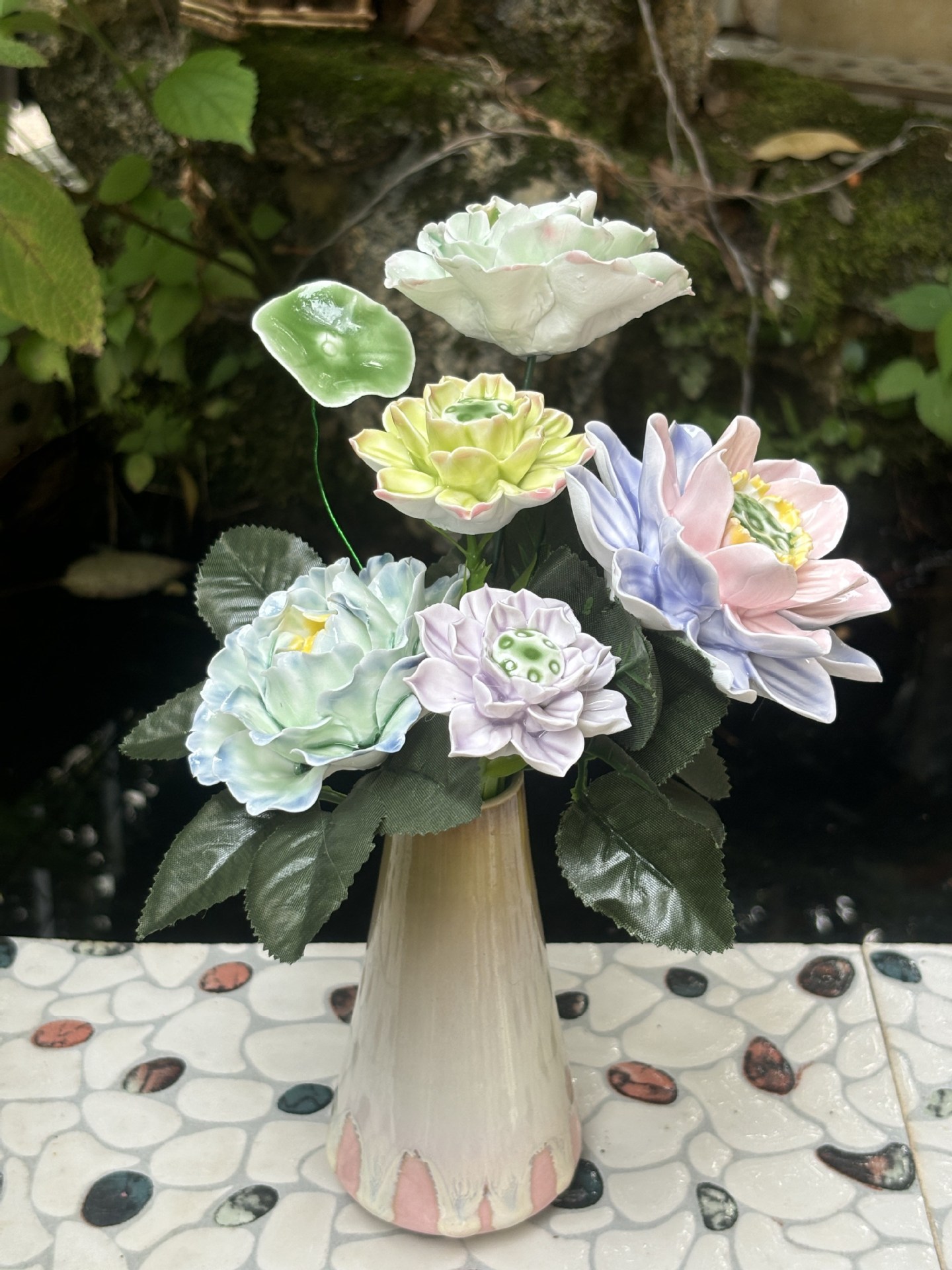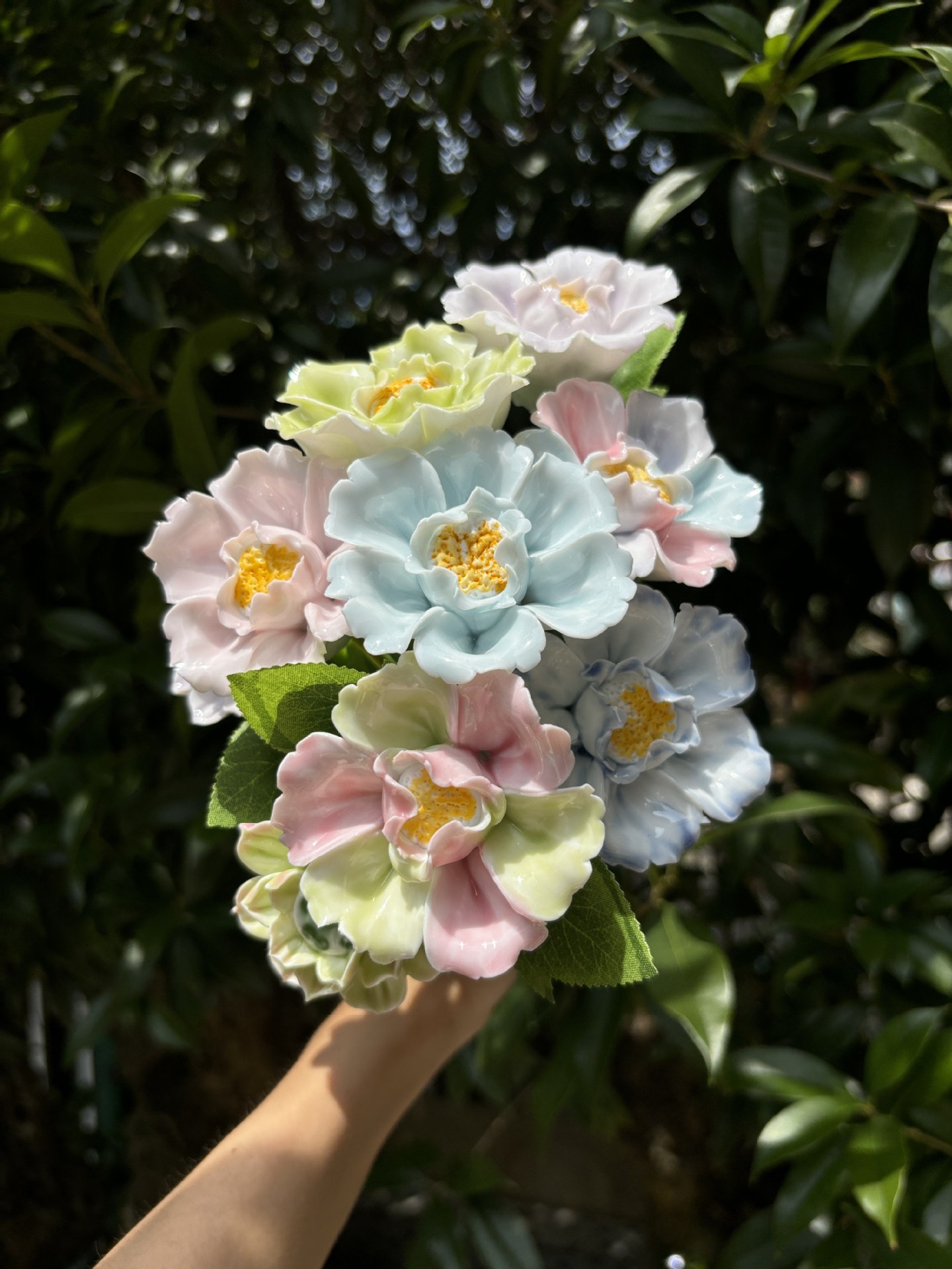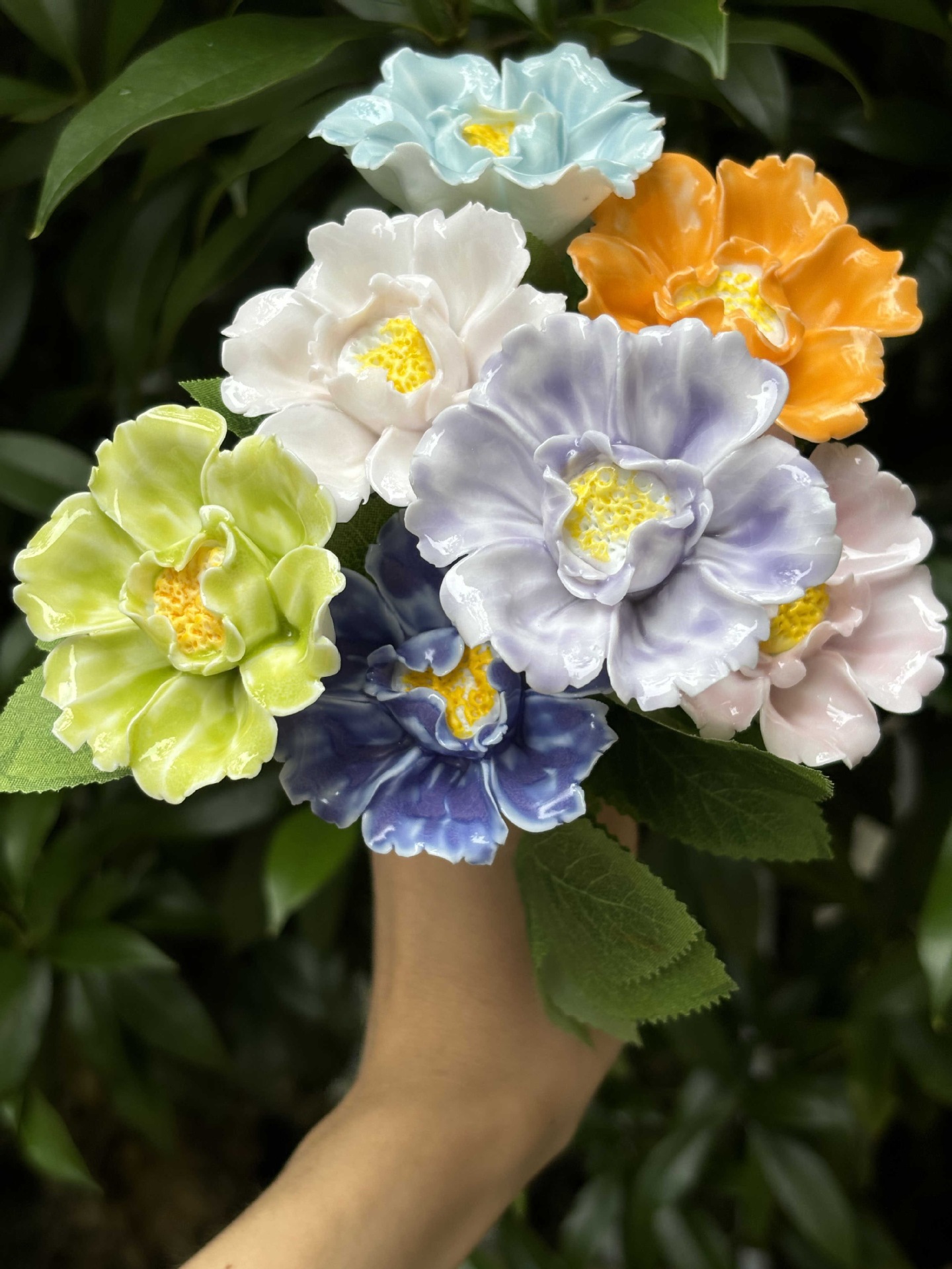 非遗手工陶瓷渐变牡丹花仿真陶瓷花束家居摆件节日送礼情人节礼物