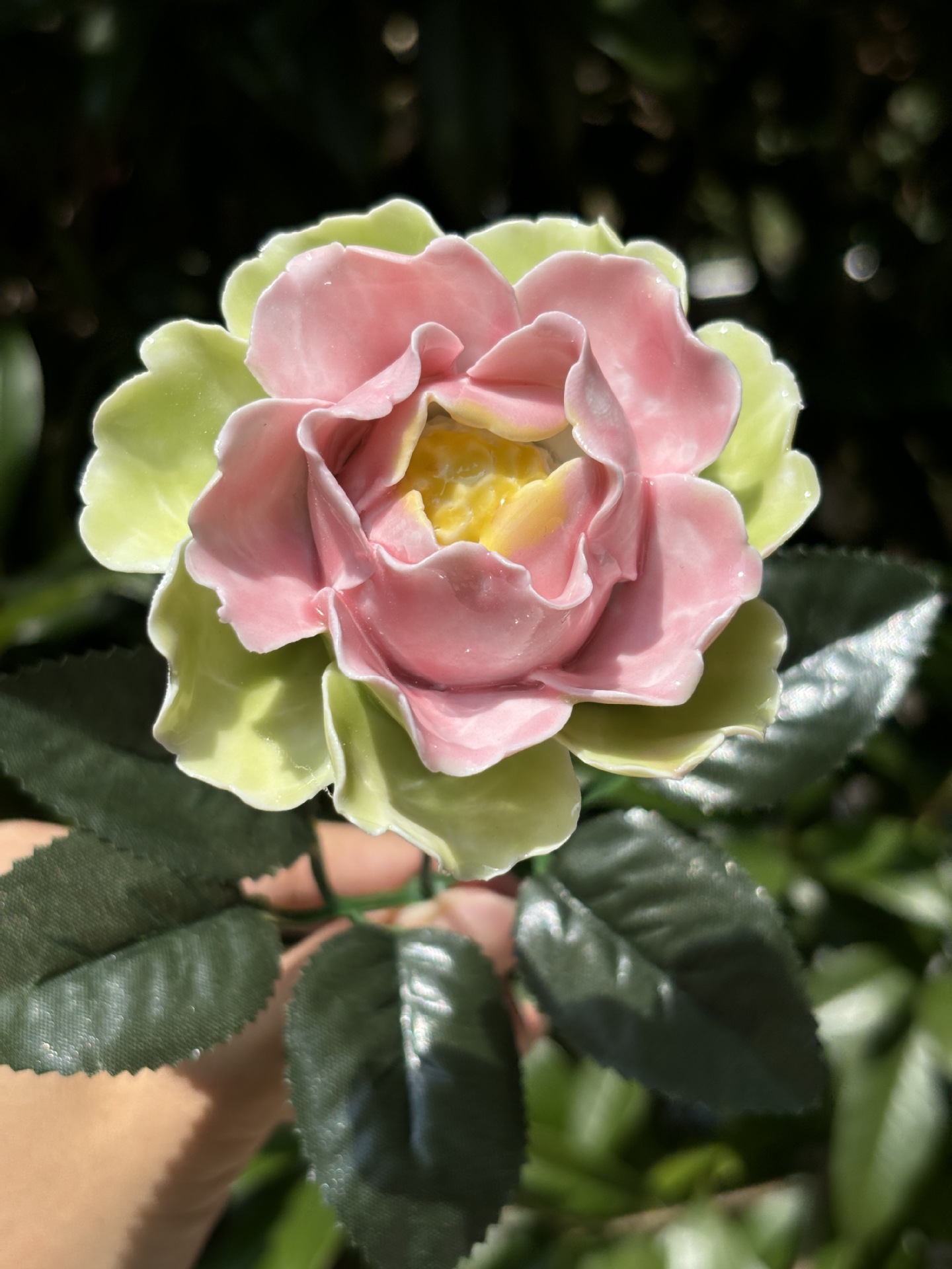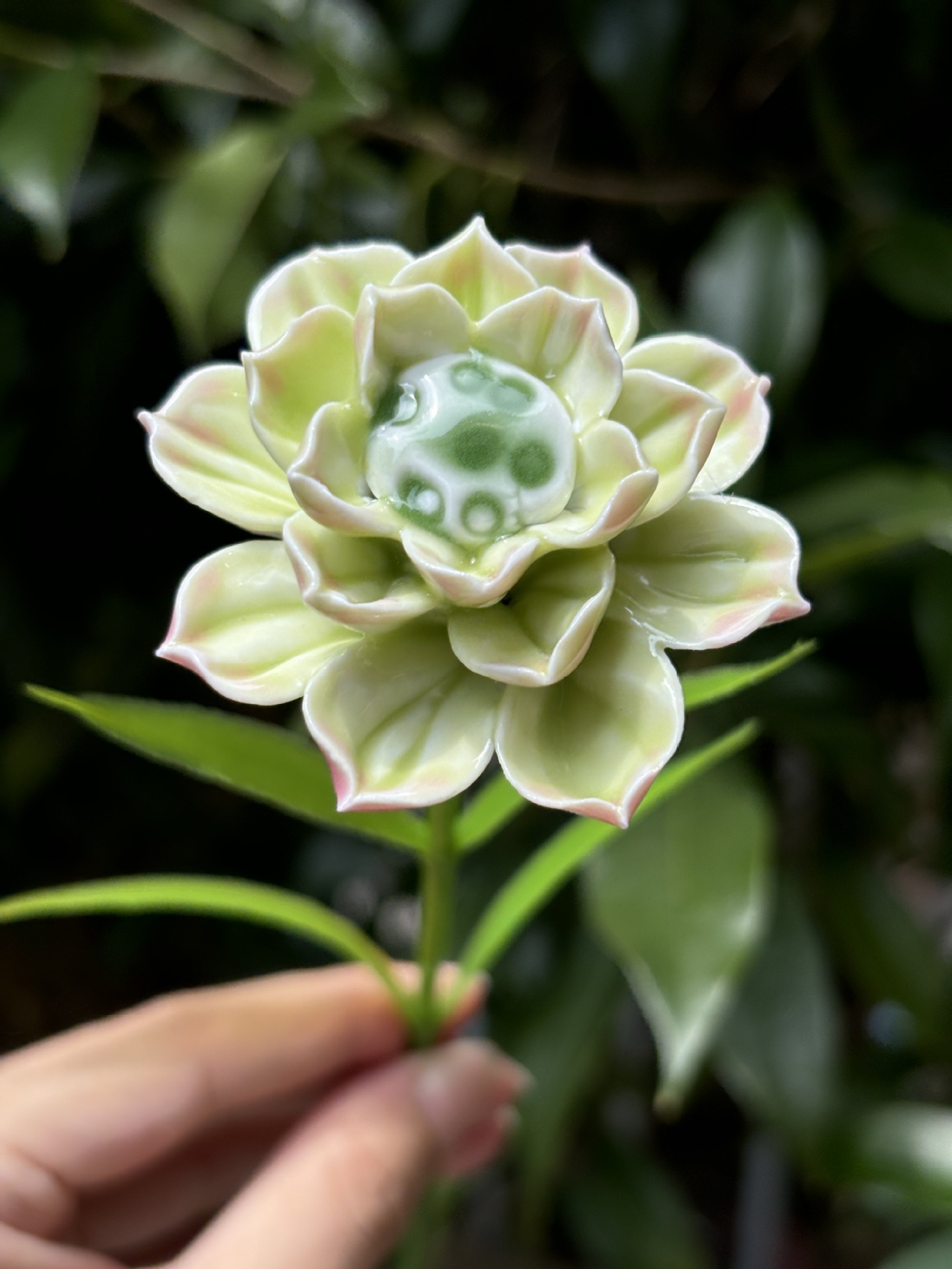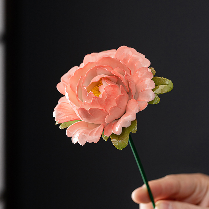 非遺物陶磁器の牡丹の花の置物の手は花の芸をつまんで生け花の家のデスクトップを飾って祝日の贈り物を飾ります。