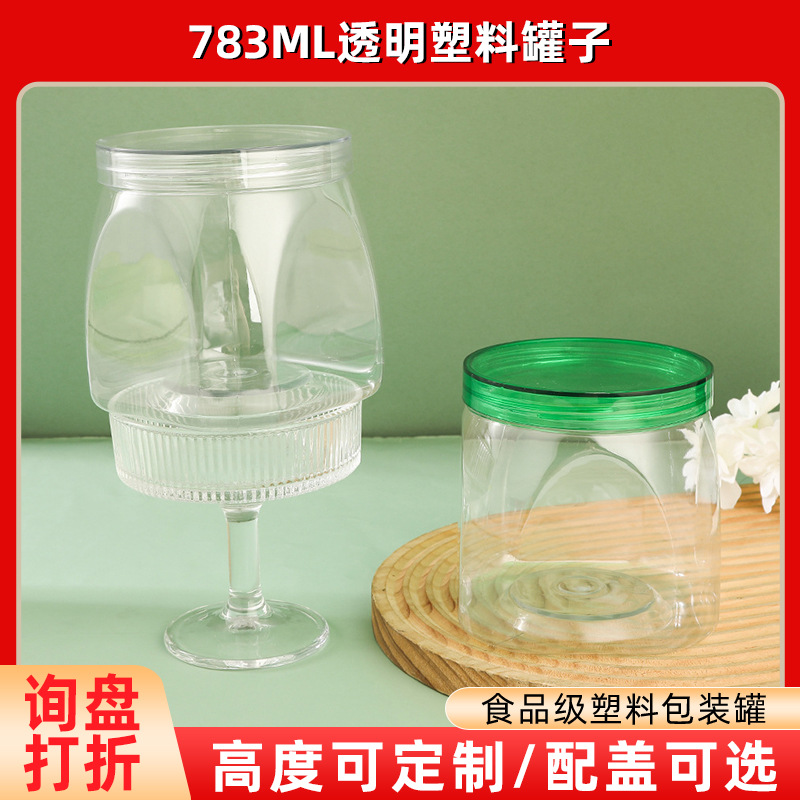 783ML透明塑料罐子食品级PET密封罐一次性坚果零食广口包装罐批发