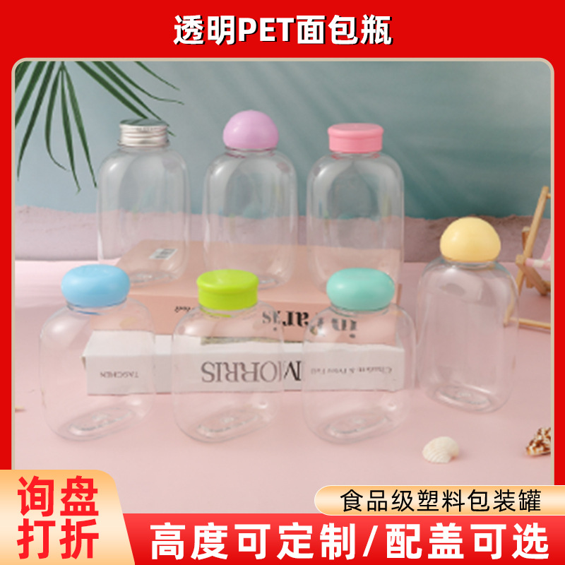 インターネット有名人透明 PET パンボトル在庫使い捨て食品保存瓶 PP カラー蓋密封された冷たい飲み物ミルクティーボトル