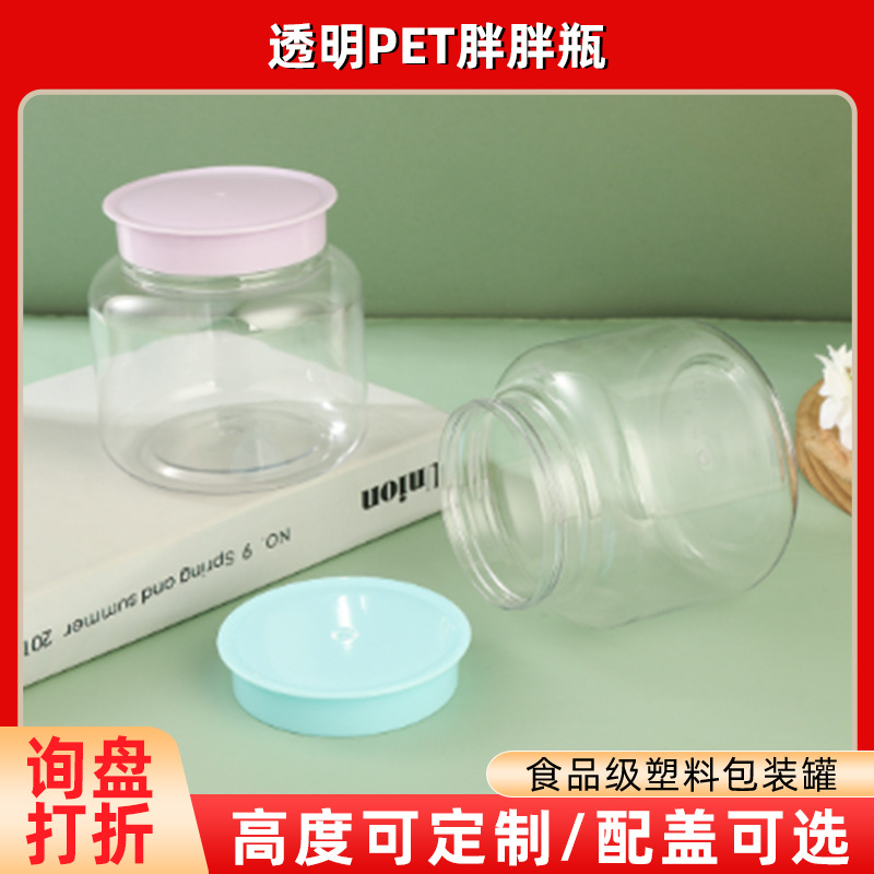 透明PET胖胖瓶大肚型茶包果干零食包装罐一次性食品级密封塑料罐