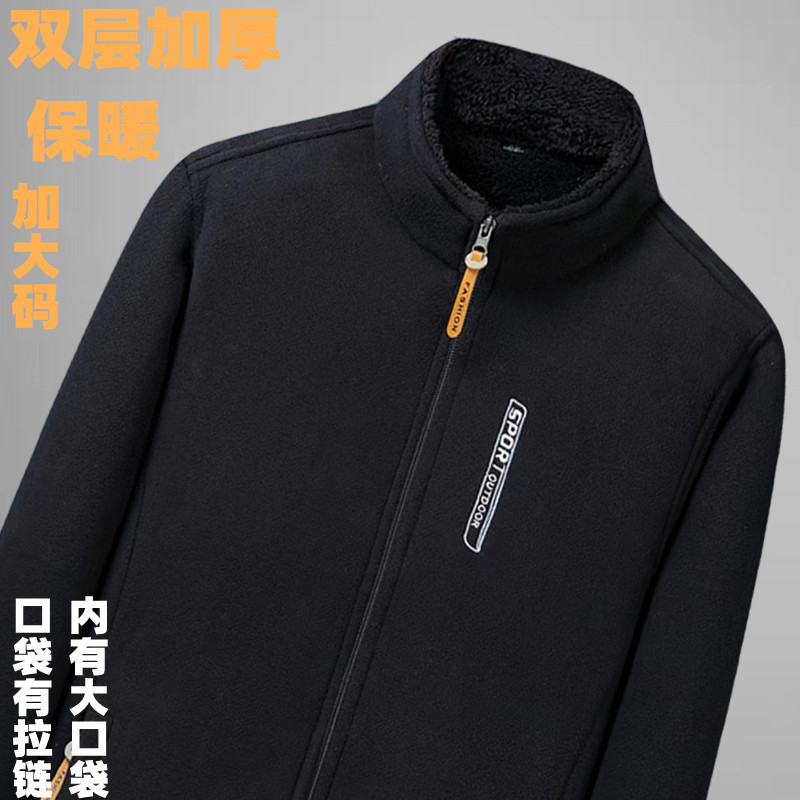 老年加绒加厚保暖摇粒绒外套爸爸户外上衣男士秋冬季休闲立领卫衣