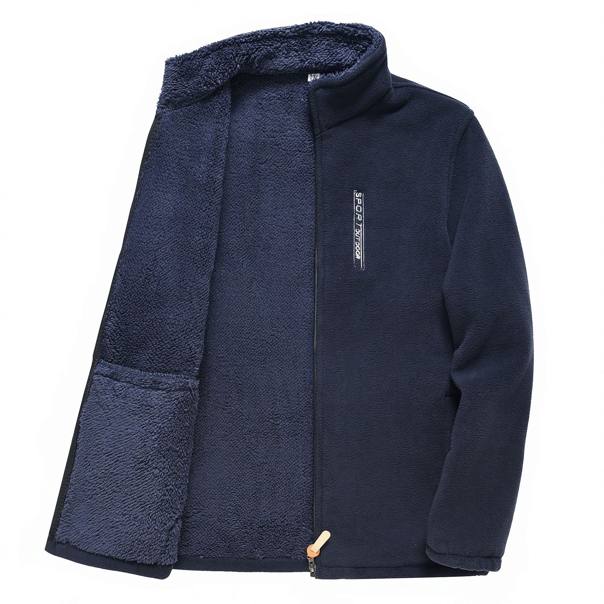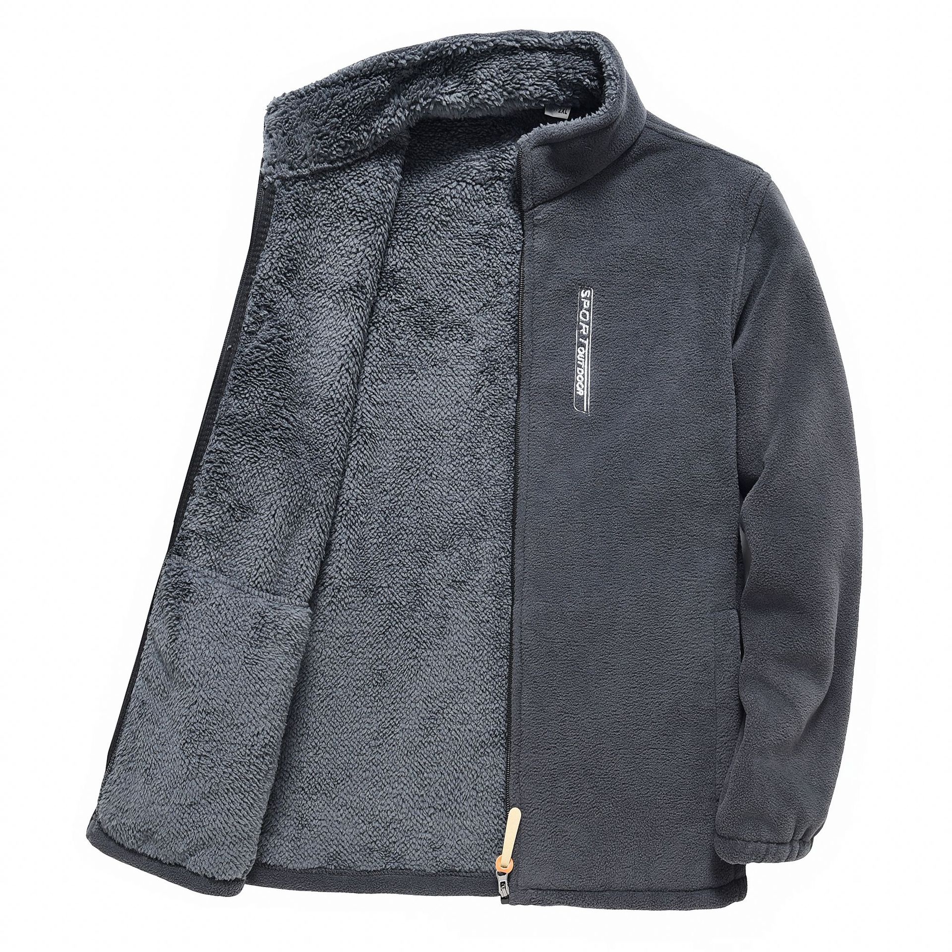 新款摇粒绒男立领拉链开衫外套秋冬季男装加厚保暖摇粒绒纯色卫衣