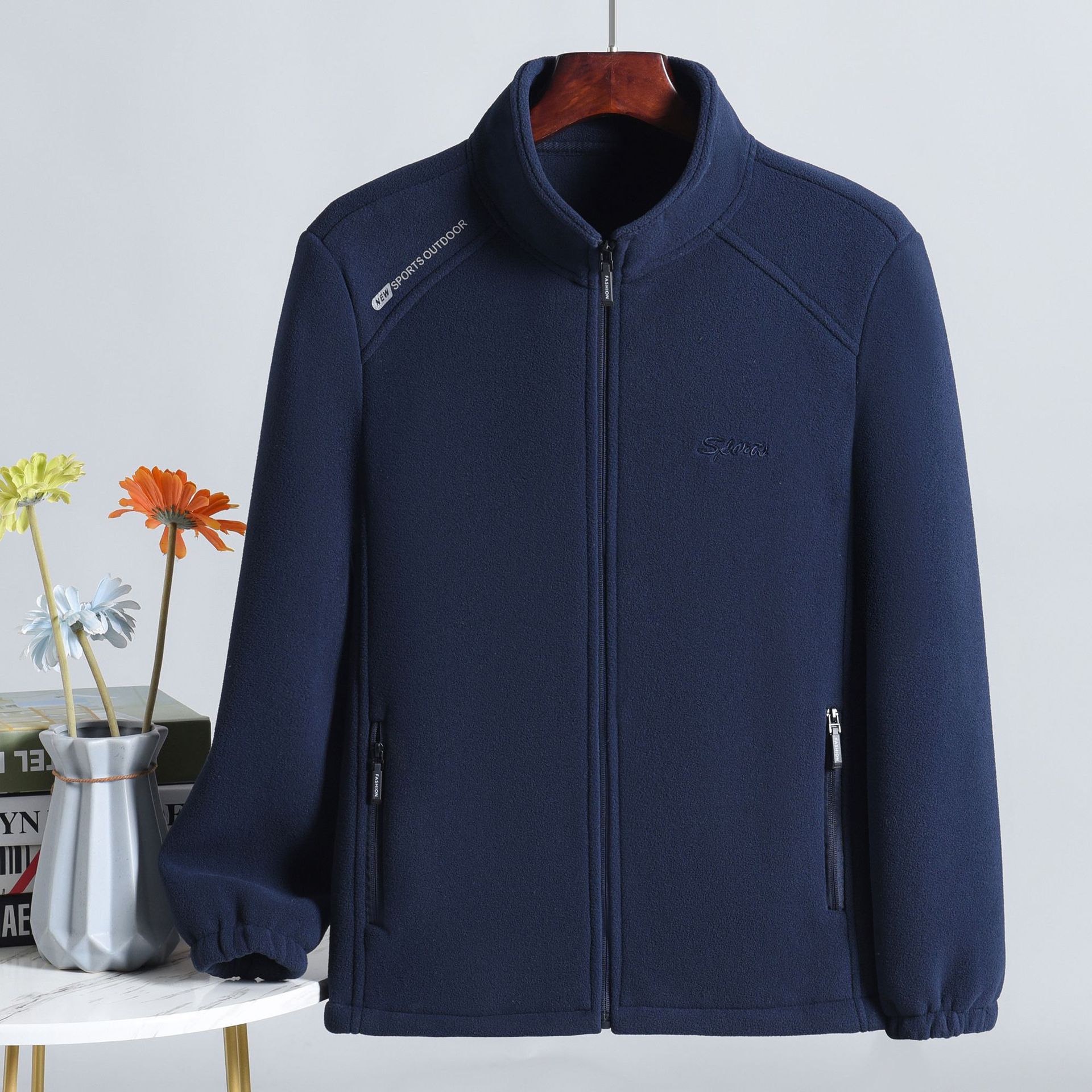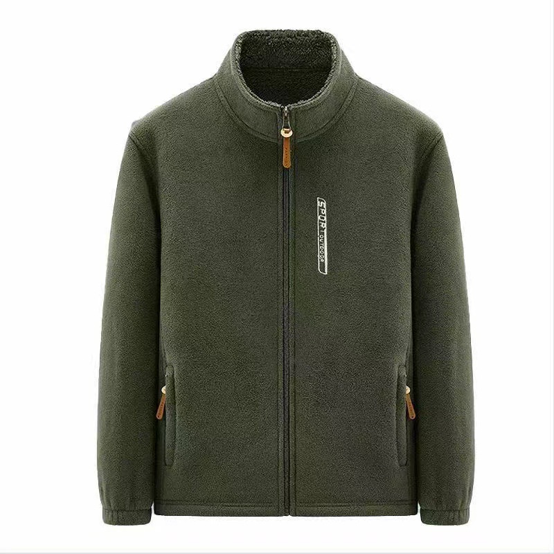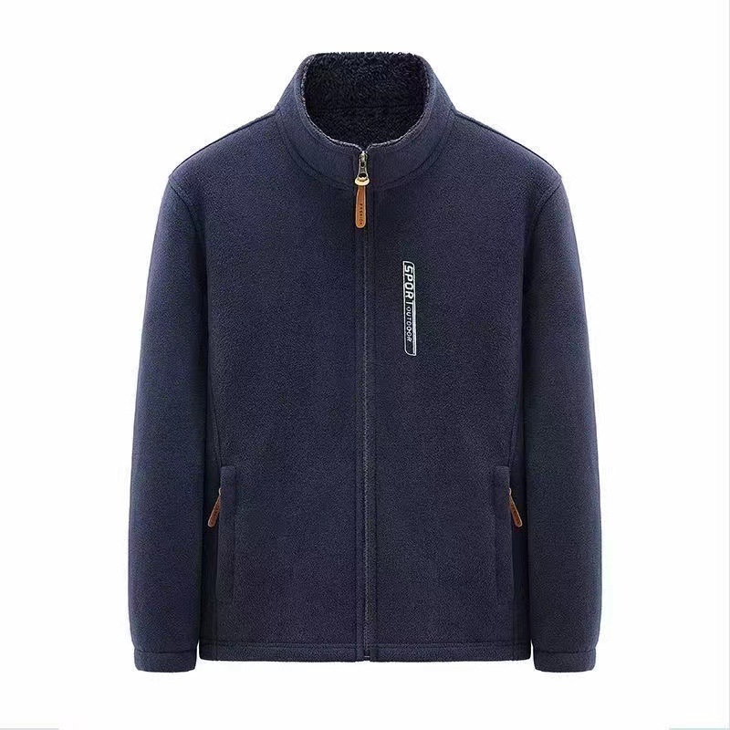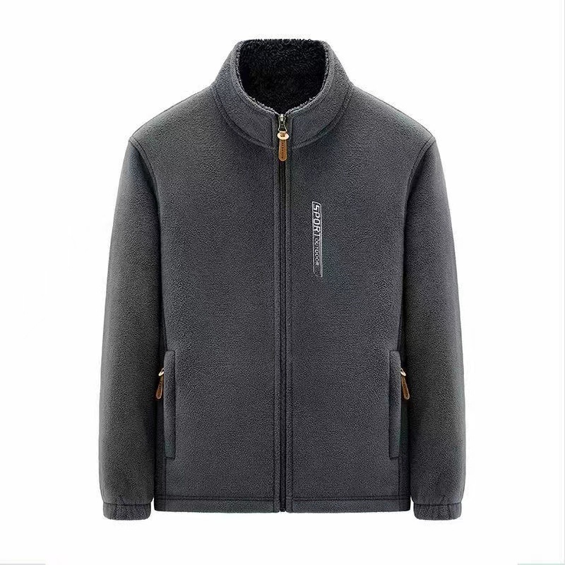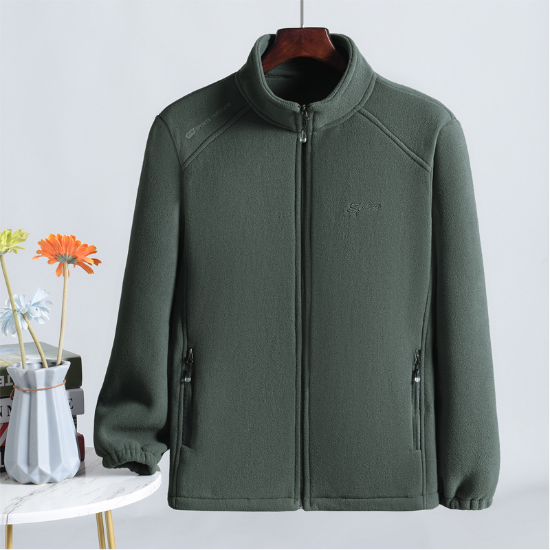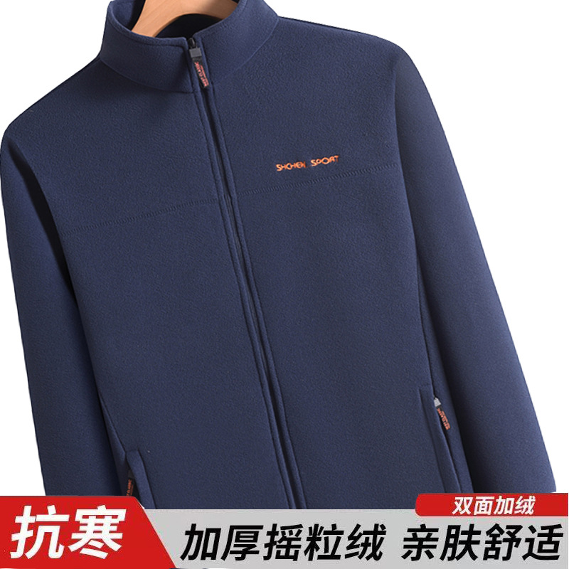 フリース男立襟ジッパーカーディガン上着春秋タイプ男服保温フリース大サイズ上着父コート