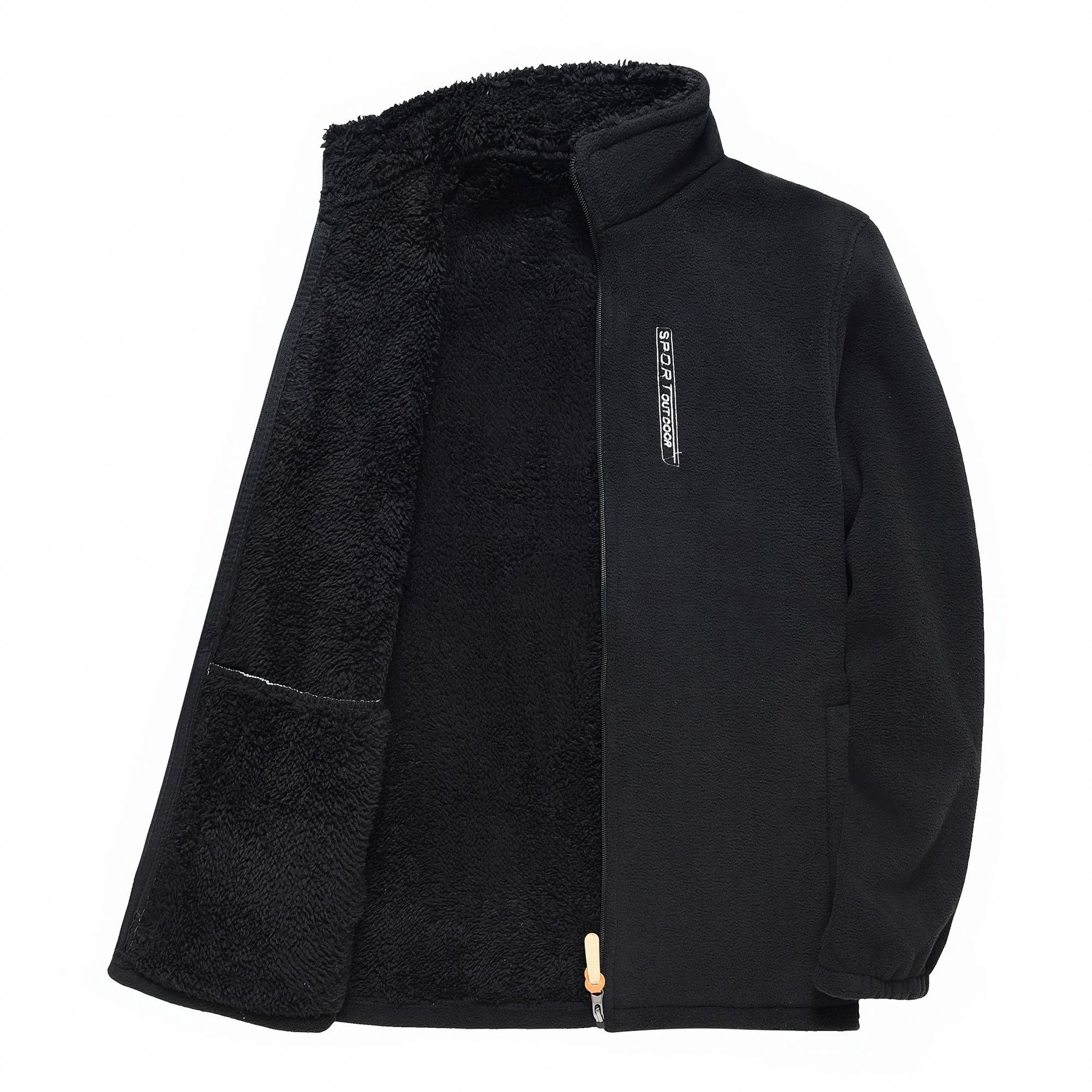 男士新款摇粒绒立领拉链开衫外套秋冬季加绒加厚保暖休闲纯色卫衣