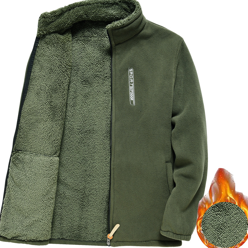 摇粒绒外套男新款加厚卫衣男舒棉绒宽松大码秋冬款爸爸摇粒绒外套