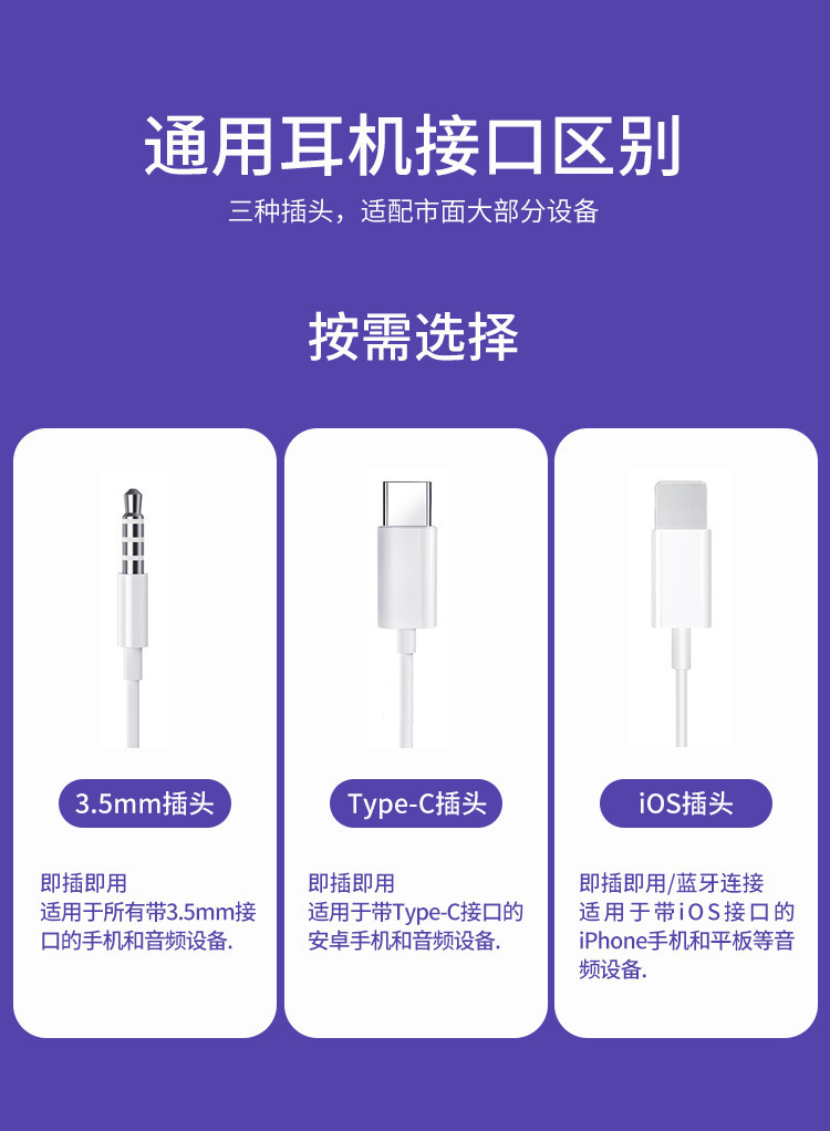 3.5mmのインイヤーヘッドフォンとType-Cインターフェースは、市場のほとんどの携帯電話に適しています。