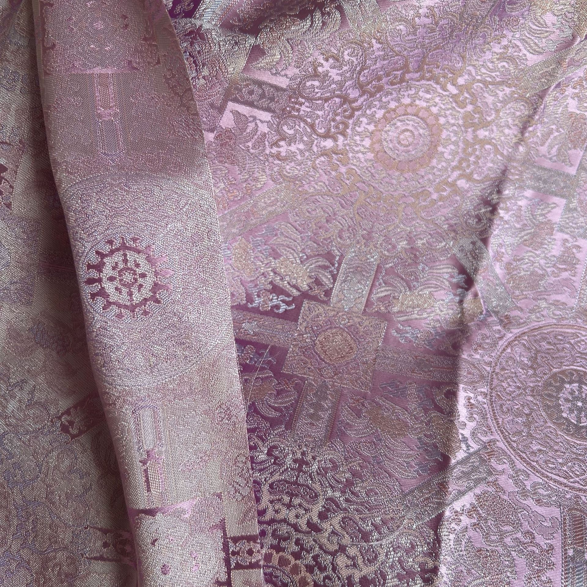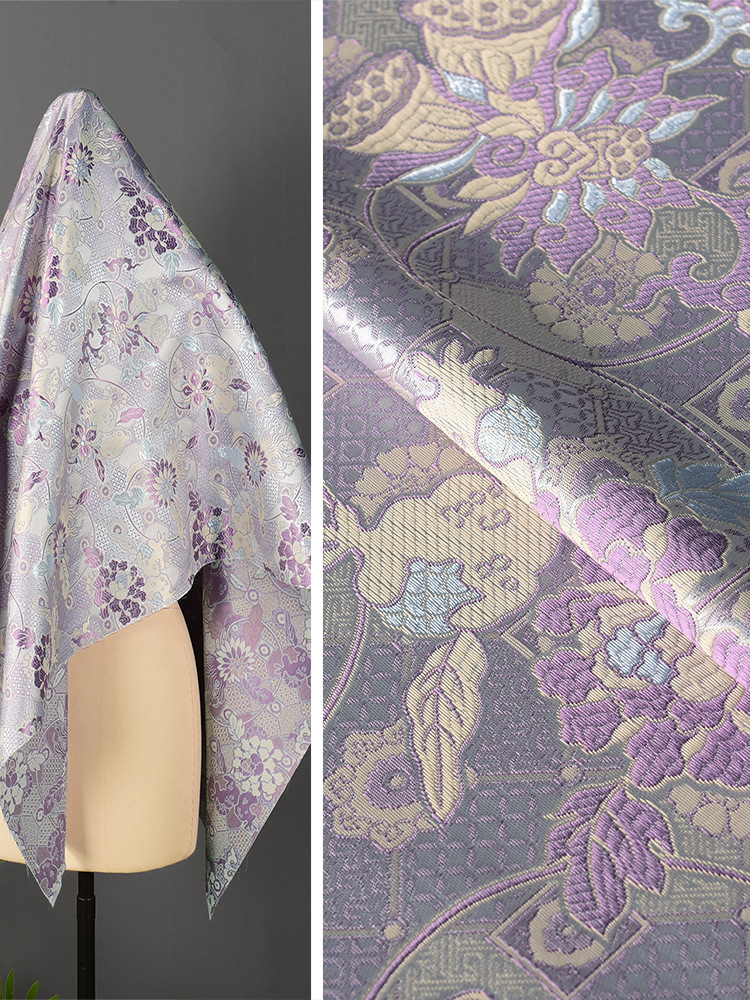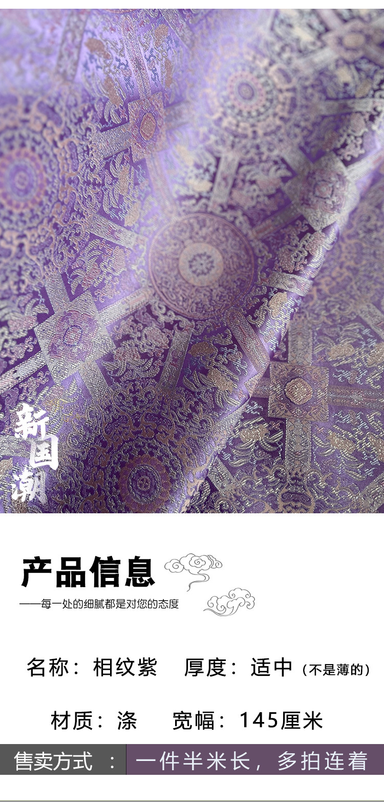 紫色相纹太好看织锦缎重工布料仿宋锦披肩半裙设计辅料面料