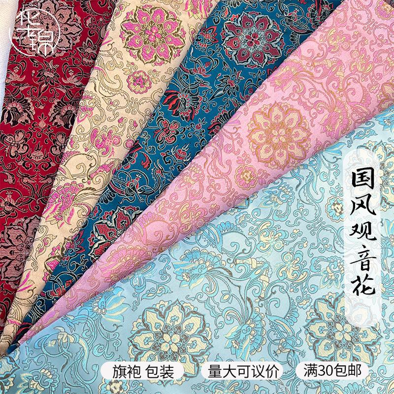 中国风观音花织锦缎提花面料仿宋锦旗袍包装复古书衣旗袍手工布料
