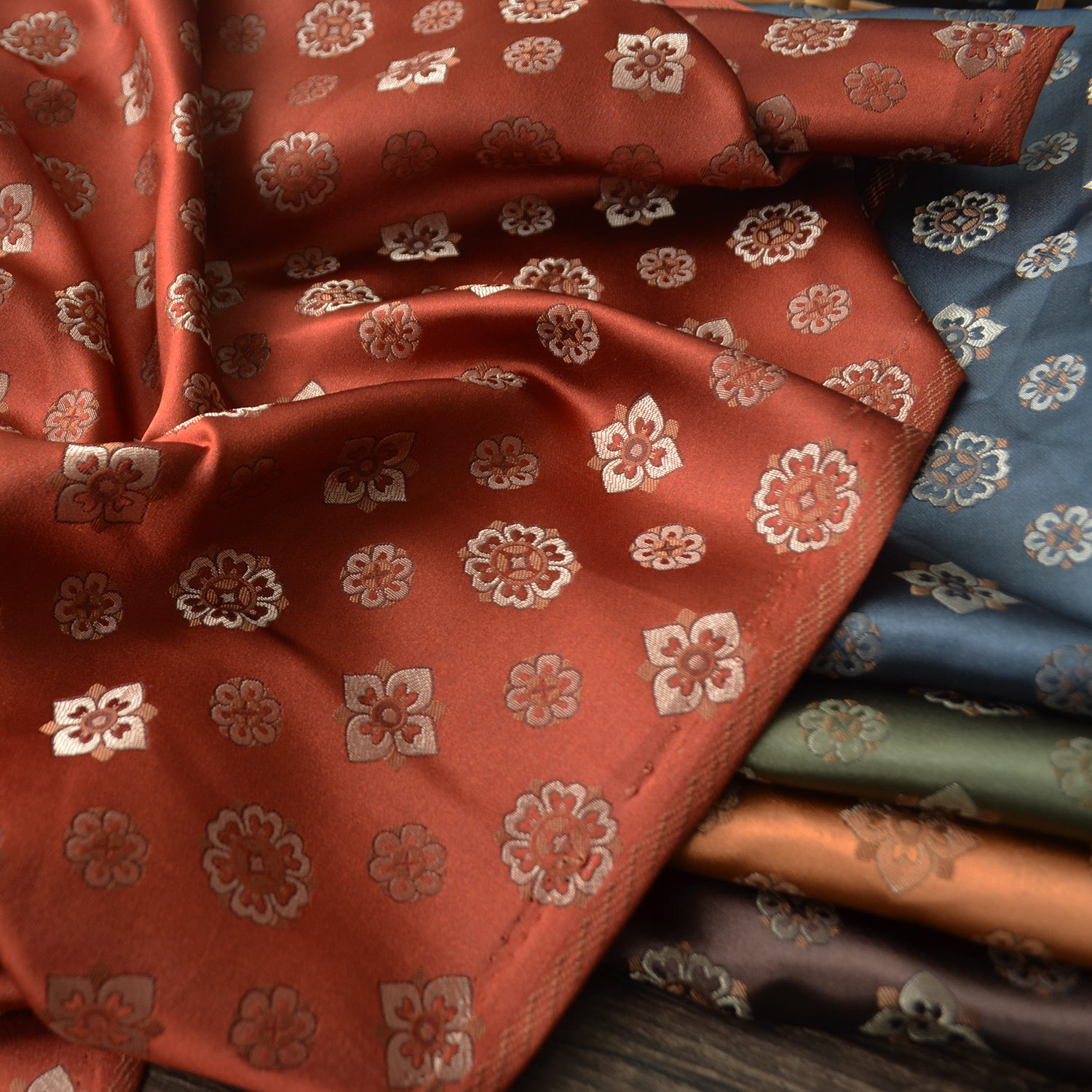 敦煌宝相花色织提花面料旗袍马甲唐装服装布DIY包桌旗锦盒仿宋锦