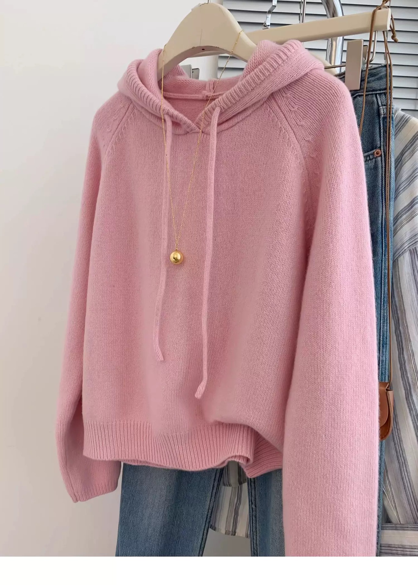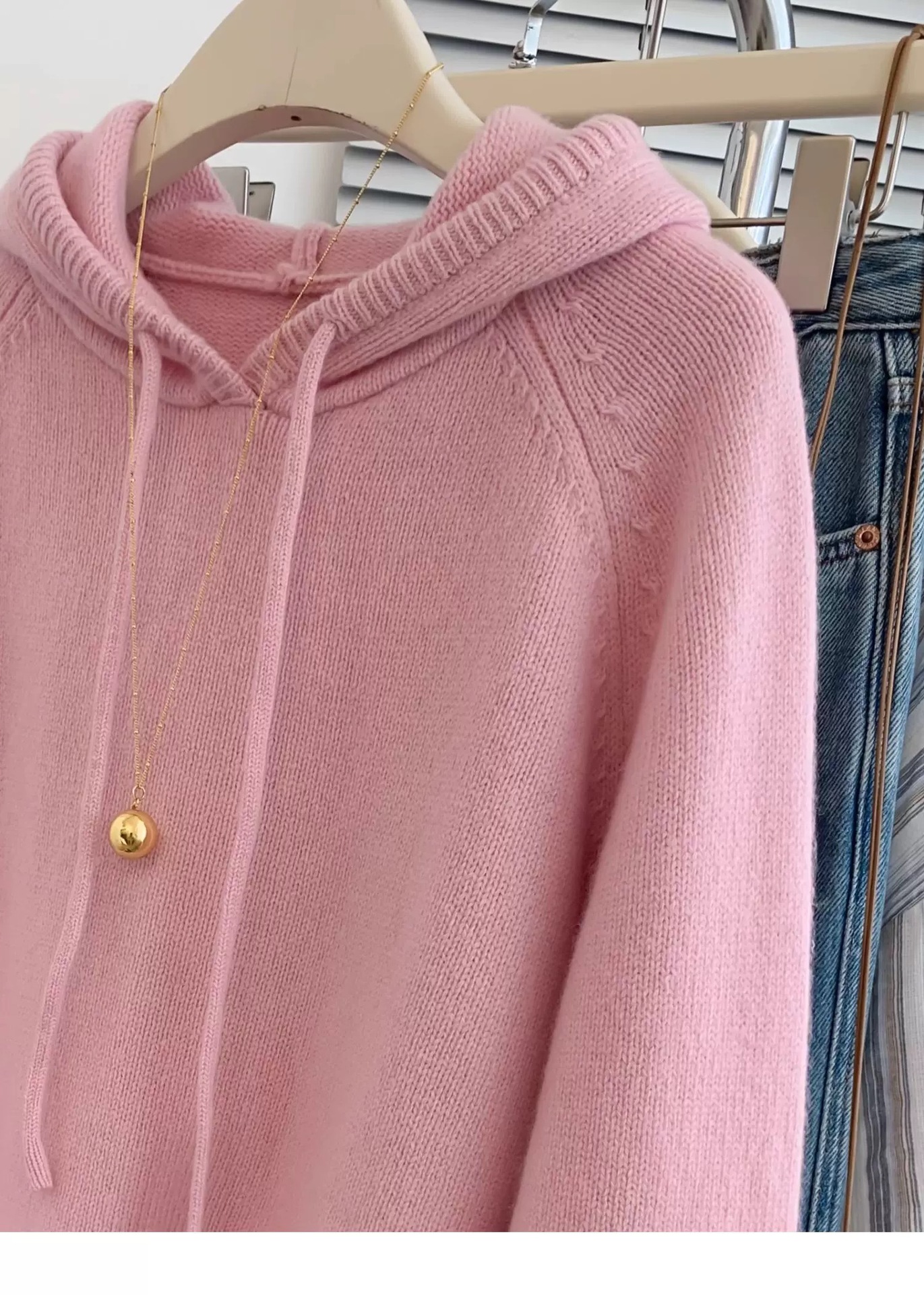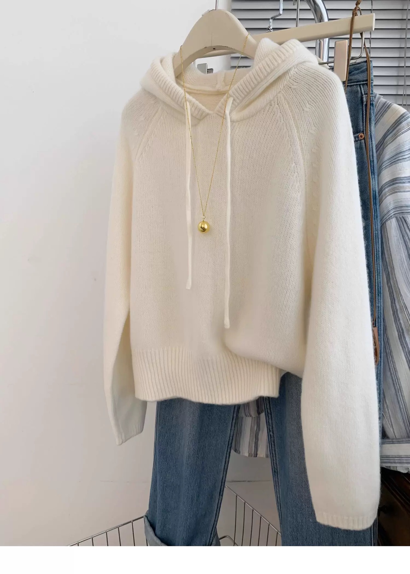 美丽诺100%纯羊毛衫女2025新款秋冬连帽短款毛衣韩版针织长袖帽衫