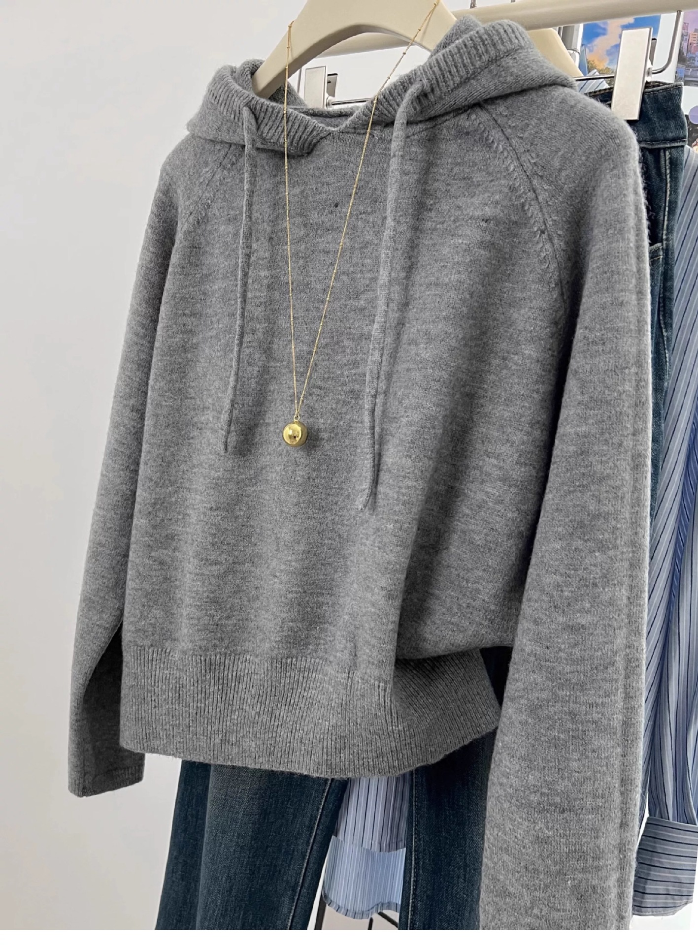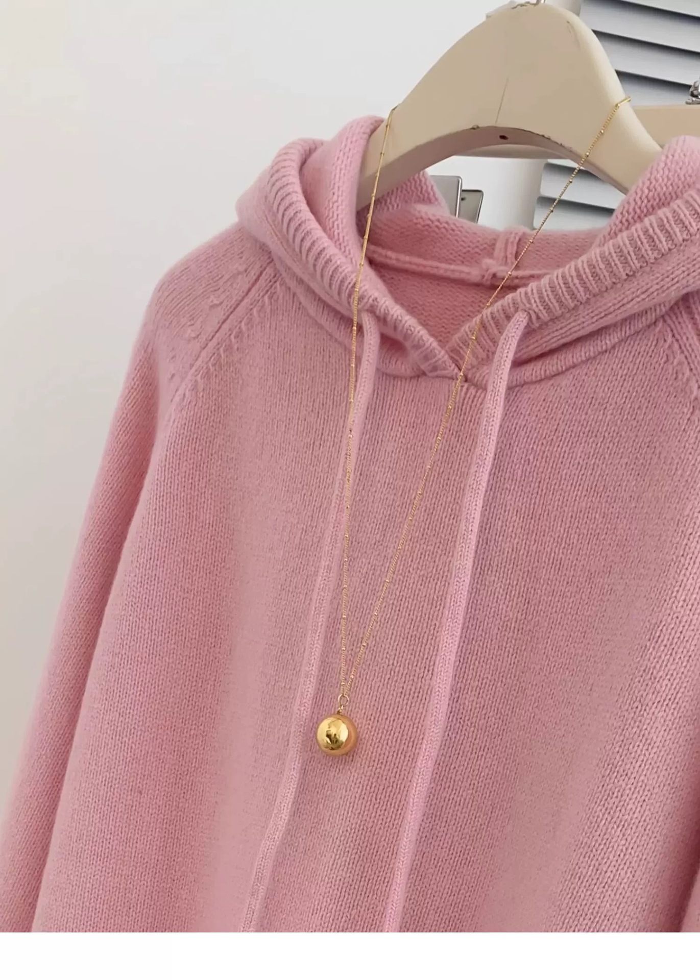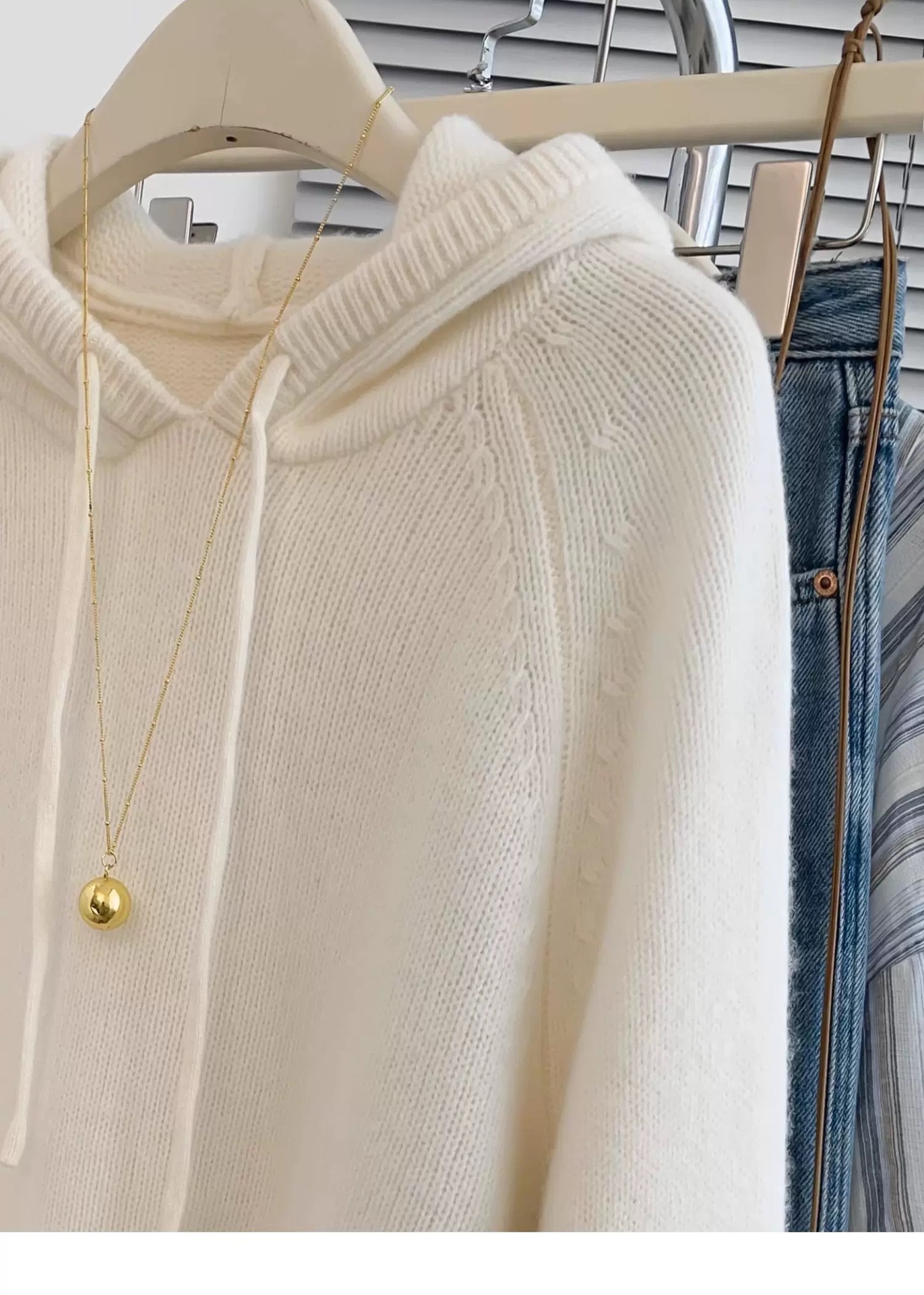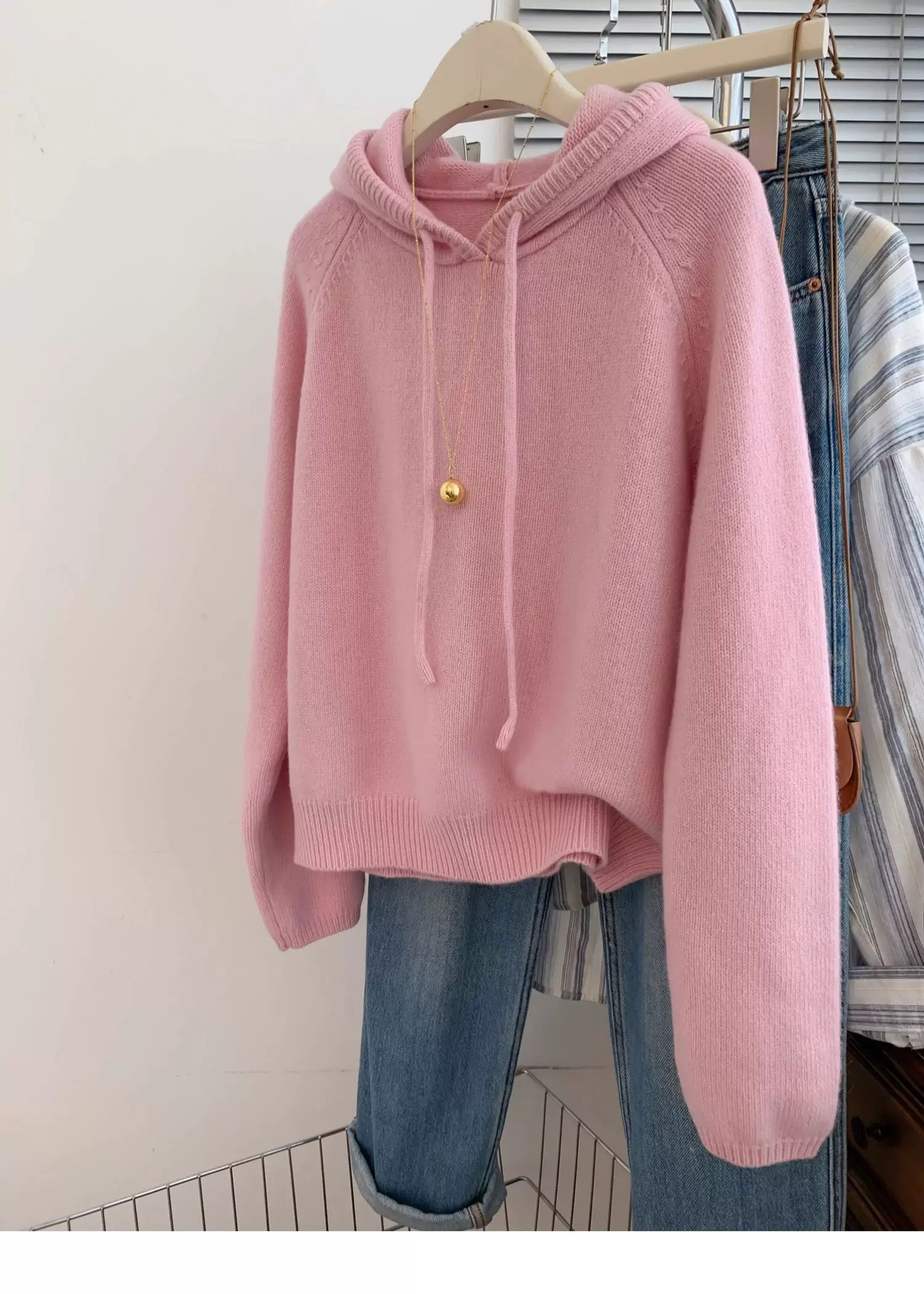 美丽诺100%纯羊毛衫女2025新款秋冬连帽短款毛衣韩版针织长袖帽衫