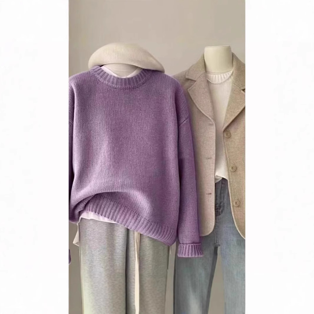 新モデル100セーター一線成衣丸首秋冬ニットシャツゆったりとしたメリヤスプルオーバーシームレスセーター
