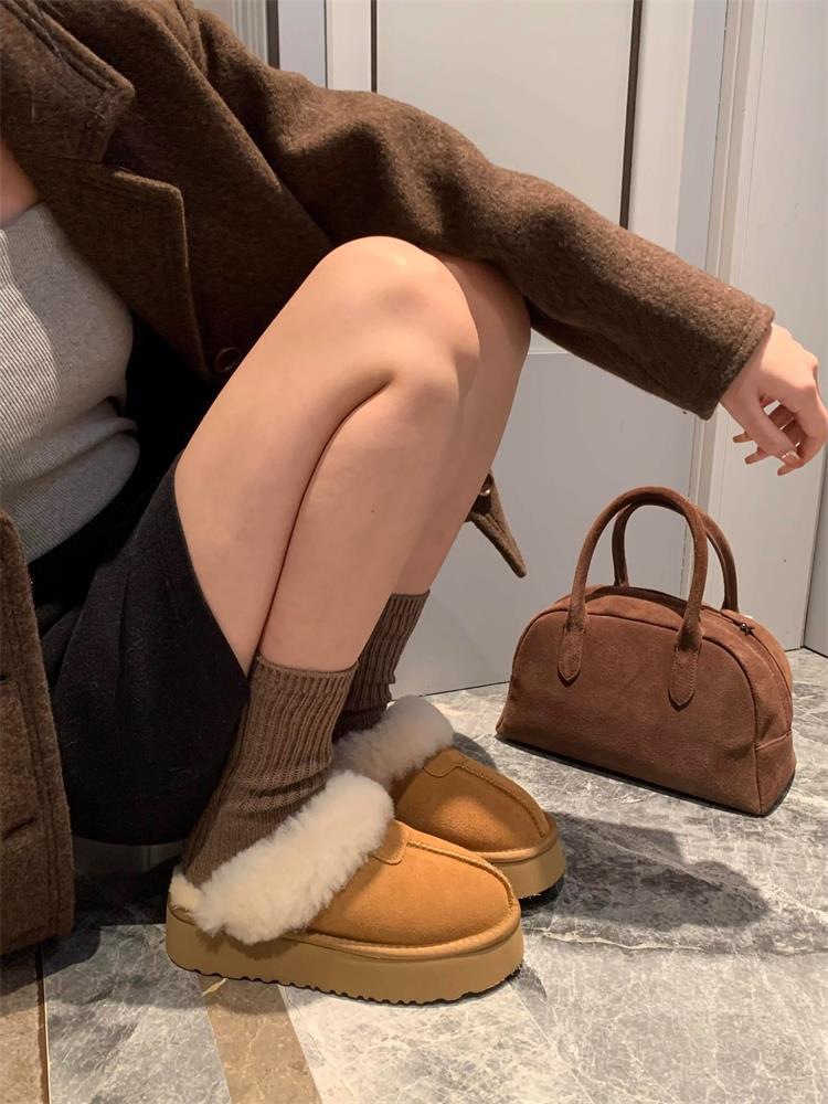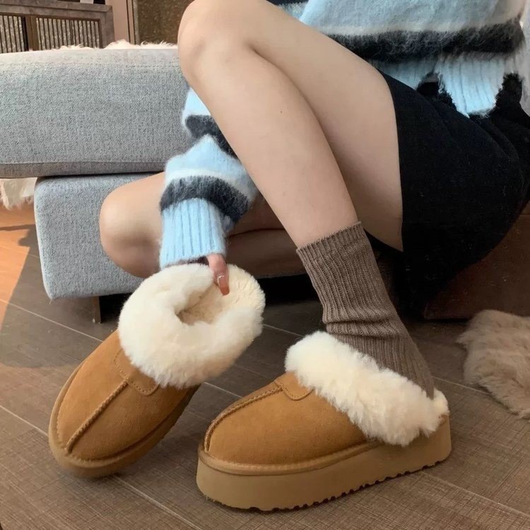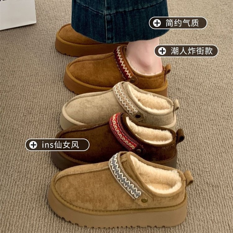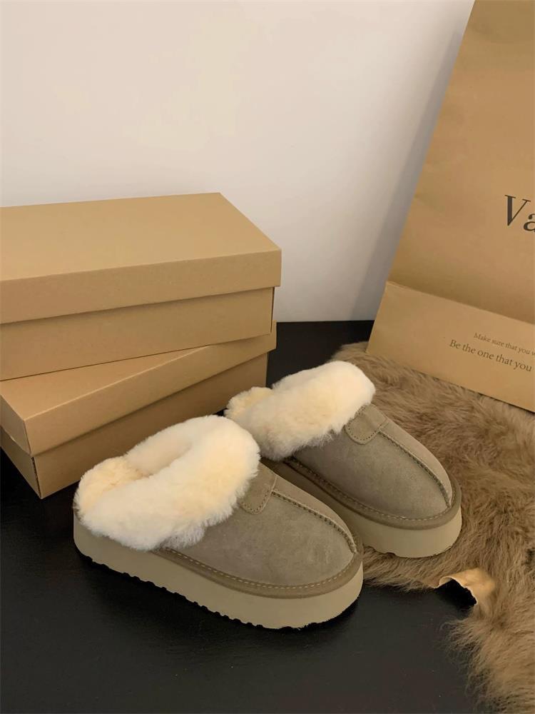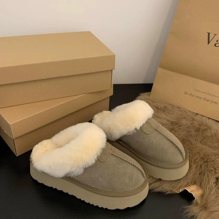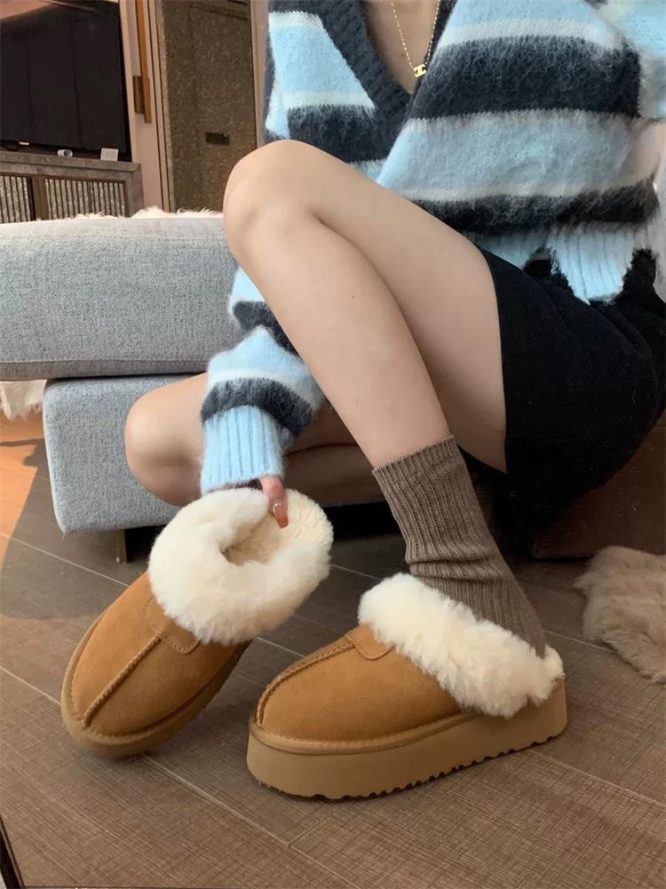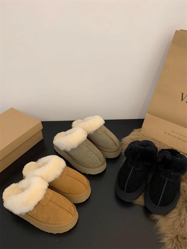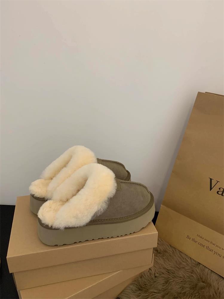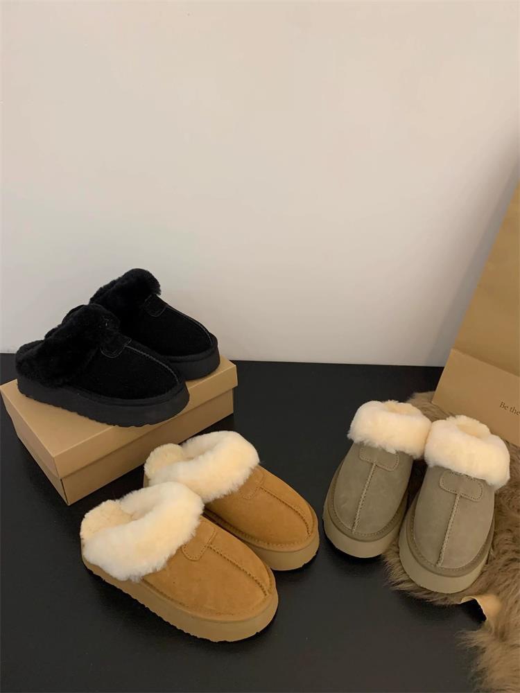 穿厚底加厚加绒外雪地靴拖鞋女2025秋冬新款松糕底包头增高毛毛拖