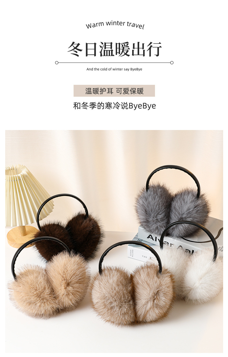 新款仿貉子毛耳罩时尚简约折叠毛绒耳罩保暖防冻长毛耳套男女同款