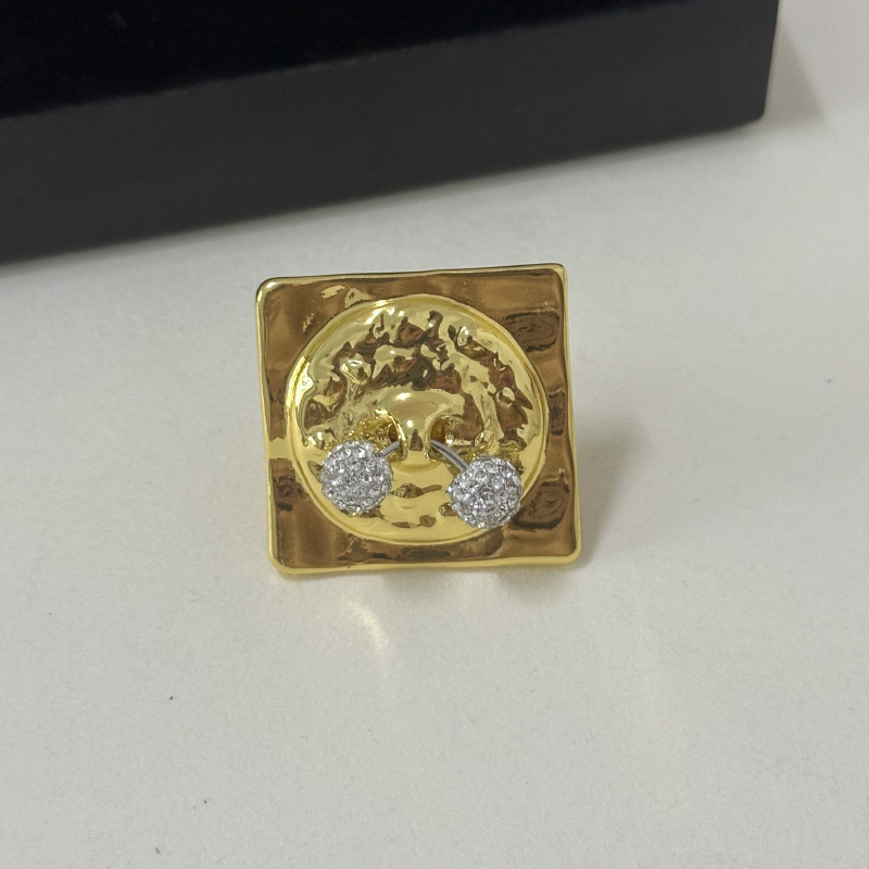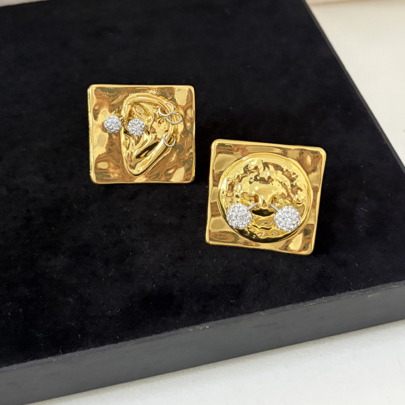 フランス式パリ風軽豪華高級感角型爆裂ロック穴真珠フラッシュイヤリング個性誇張気質ピアス