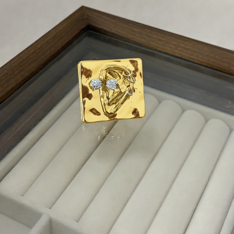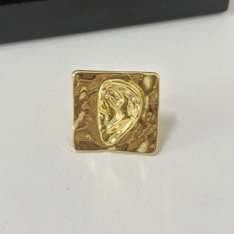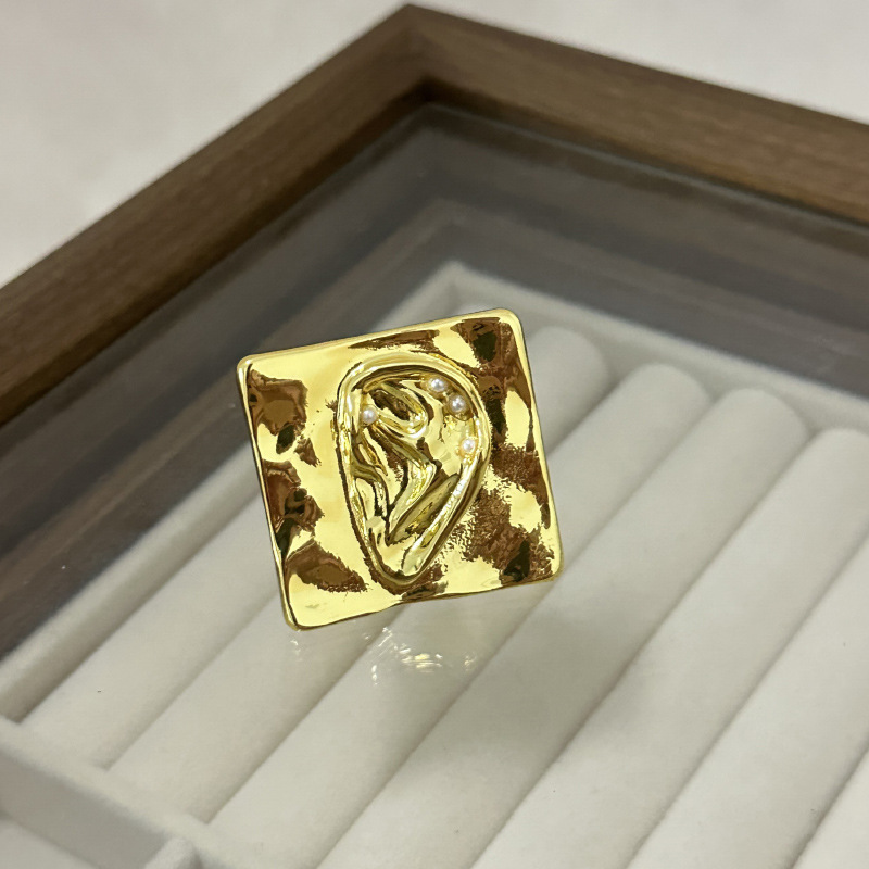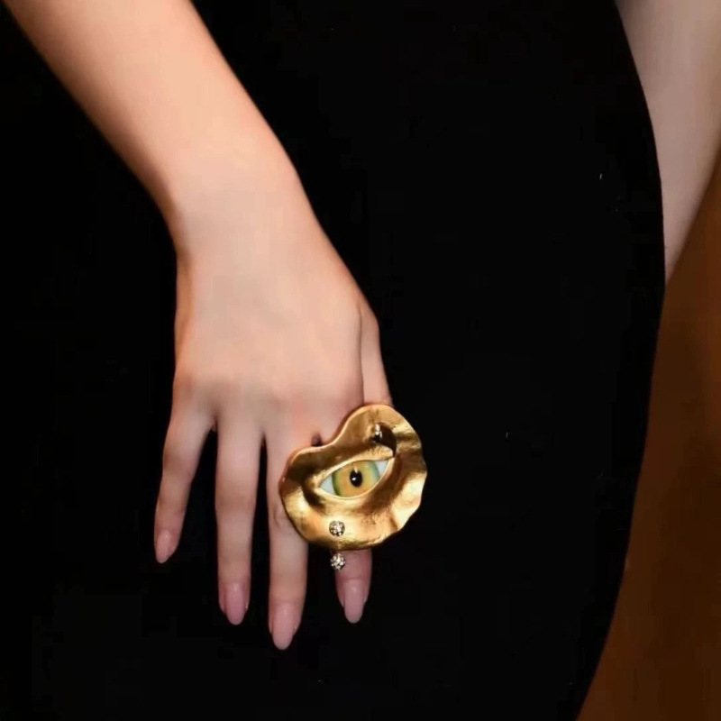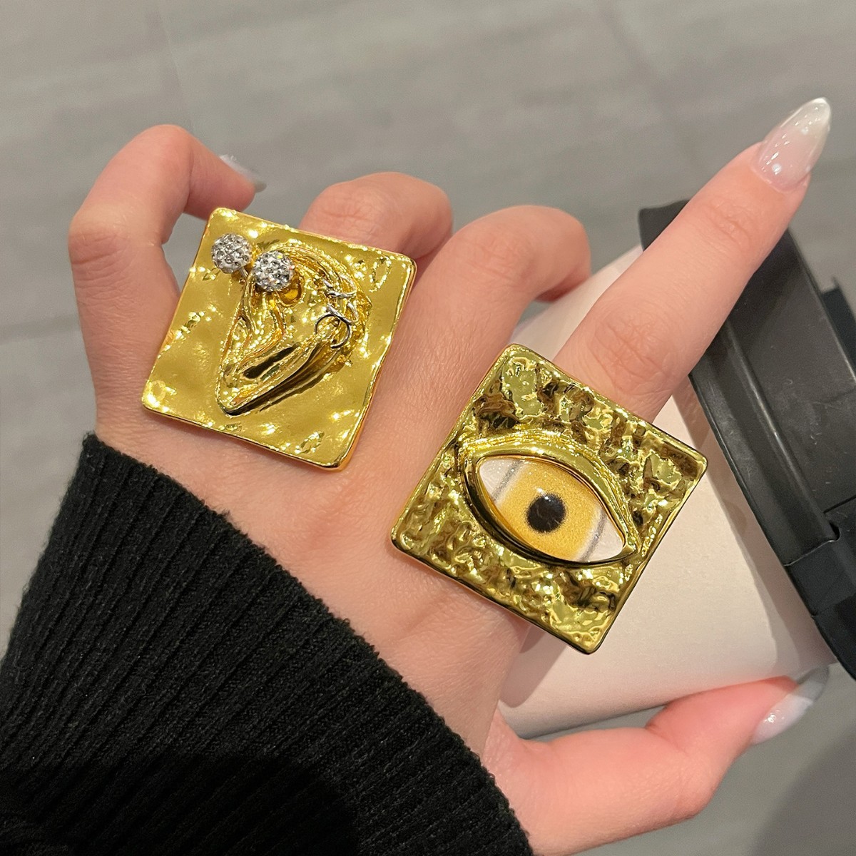 欧美复古轻奢高级感五官系列眼睛耳朵方形戒指个性时尚气质指环潮