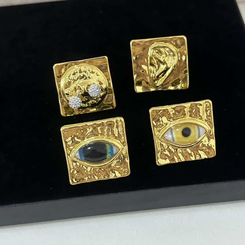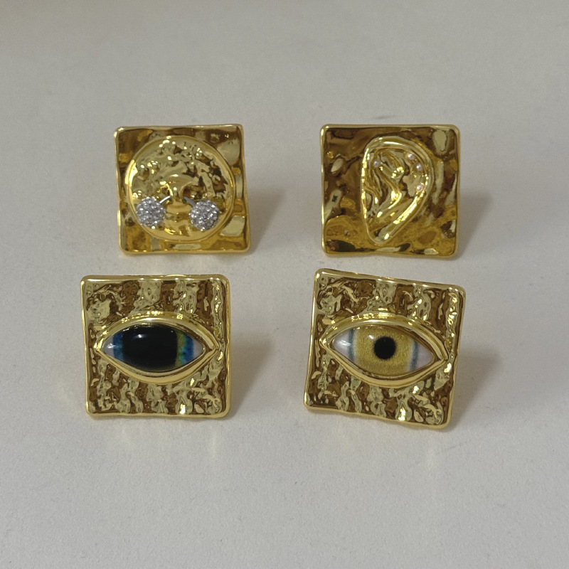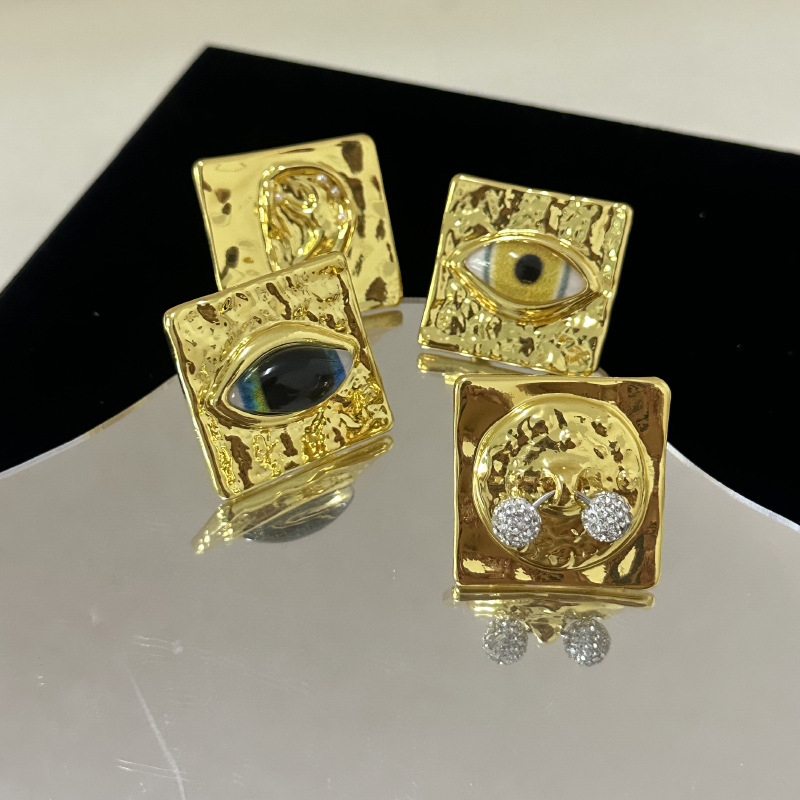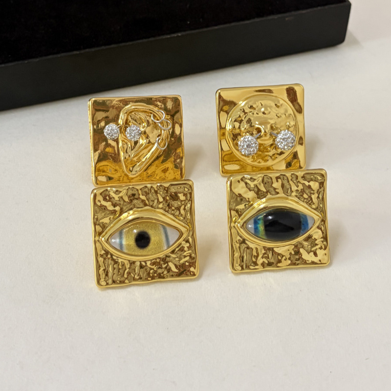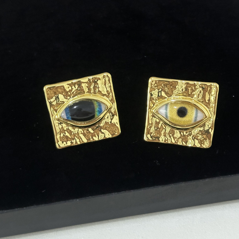 欧美小众复古独特个性金属方块恶魔之眼耳环简约时尚气质耳钉耳饰