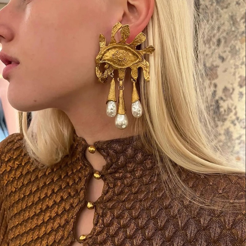 法式复古小众独特个性夸张眼睛珍珠流苏耳环轻奢时尚高级感耳饰女