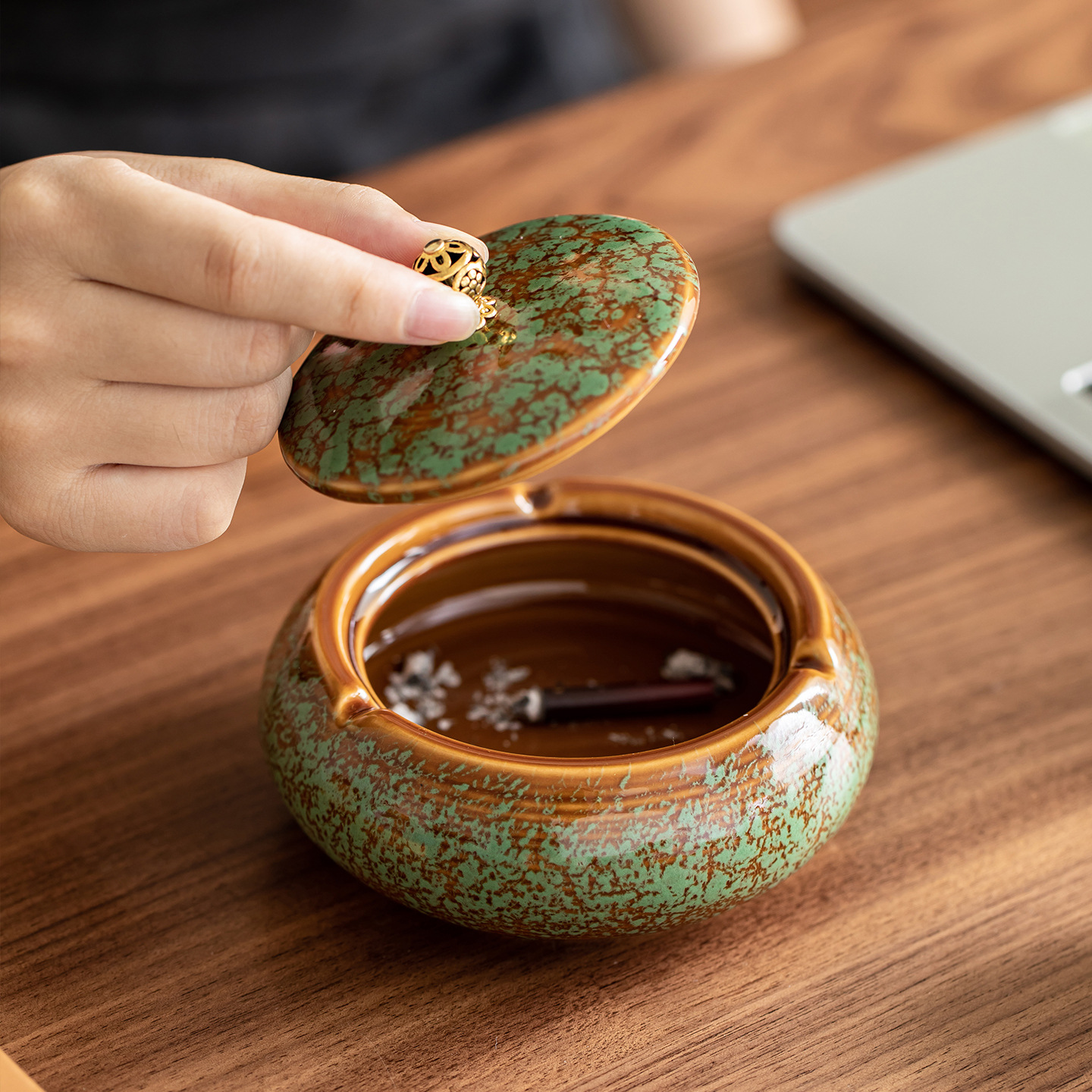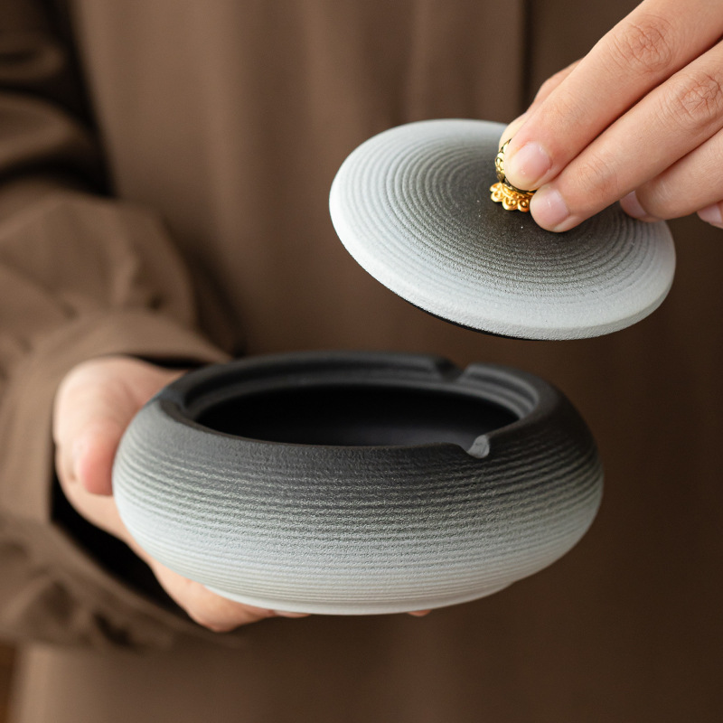 朝翔中国式創意灰皿陶磁器蓋付き軽豪華灰皿オフィス内レストラン灰皿飛灰防止