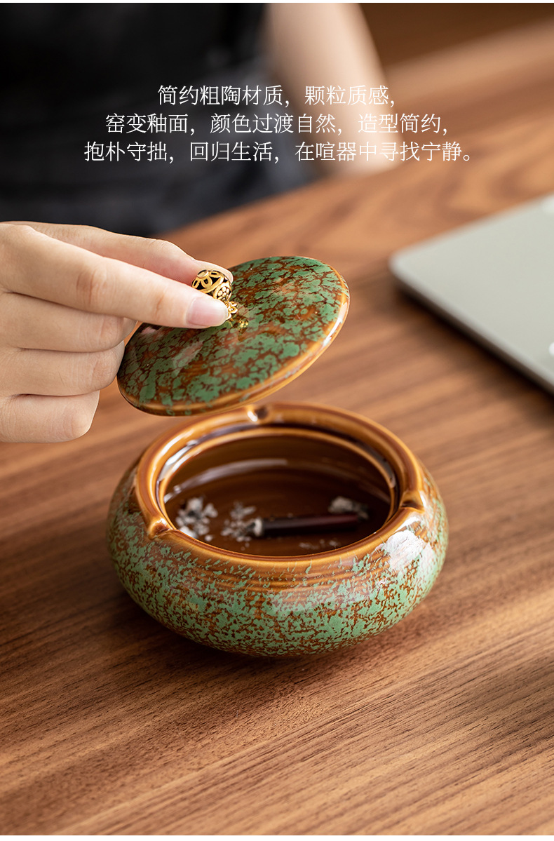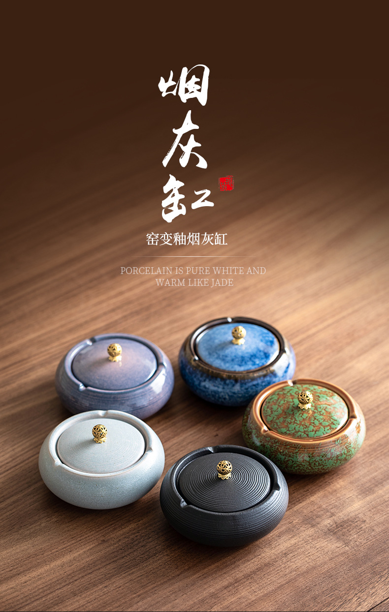 徳化哥窯陶磁器灰皿蓋付き飛灰防止灰皿創意新中国式オフィス軽豪華灰皿ケース
