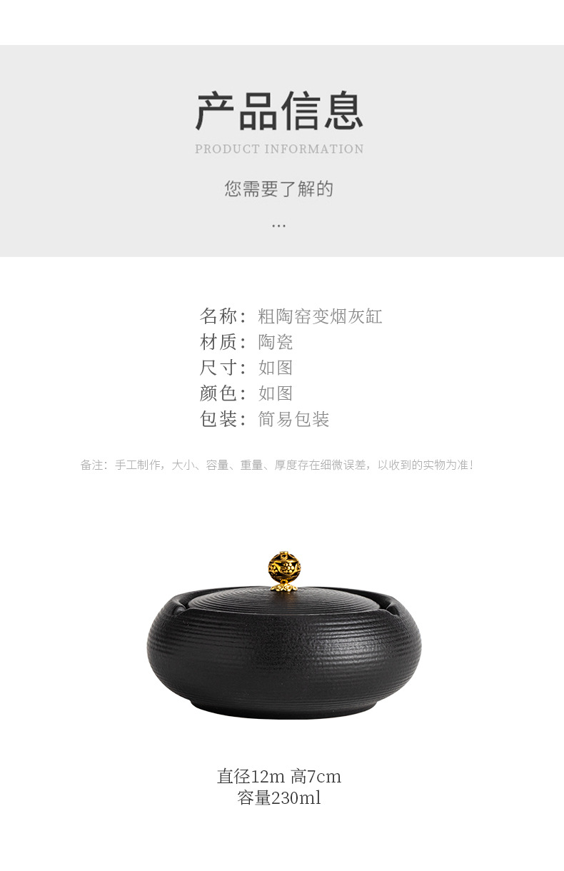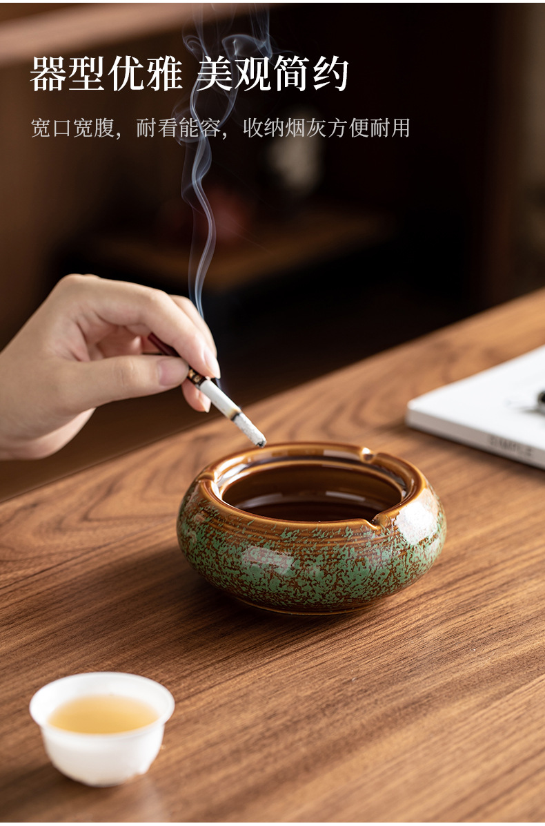 粗陶大サイズ灰皿家庭用レトロ中国式防風灰かめオフィス高級感軽豪華大気灰皿