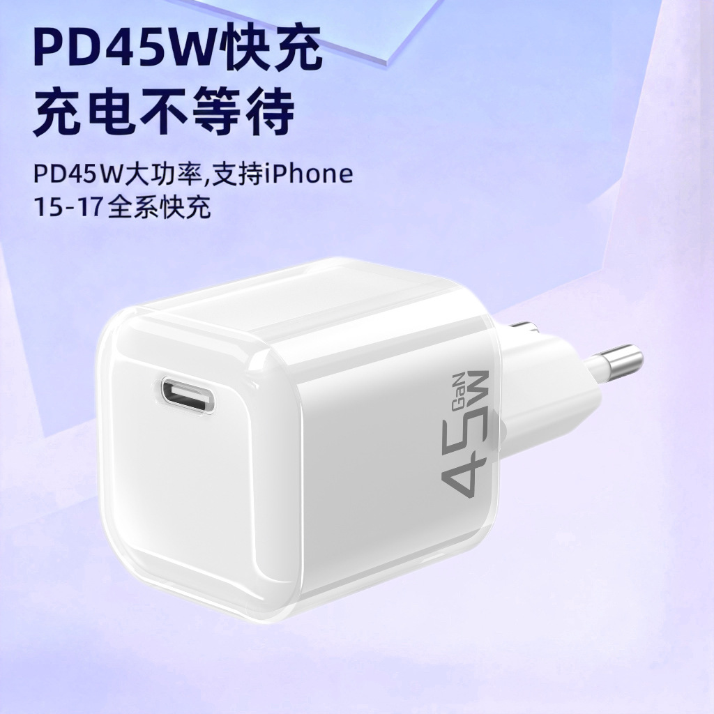 欧规PD45W充电头CE认证AVS适用苹果17透明壳iPhone17充电器DPS标