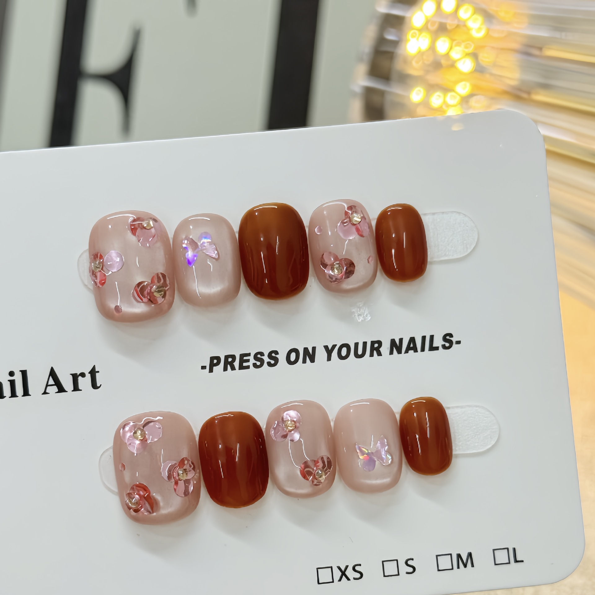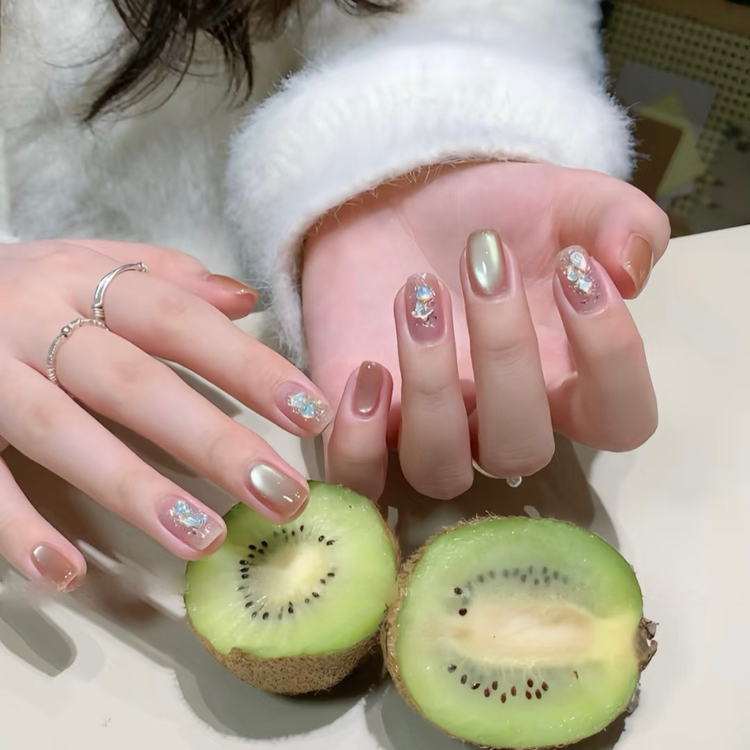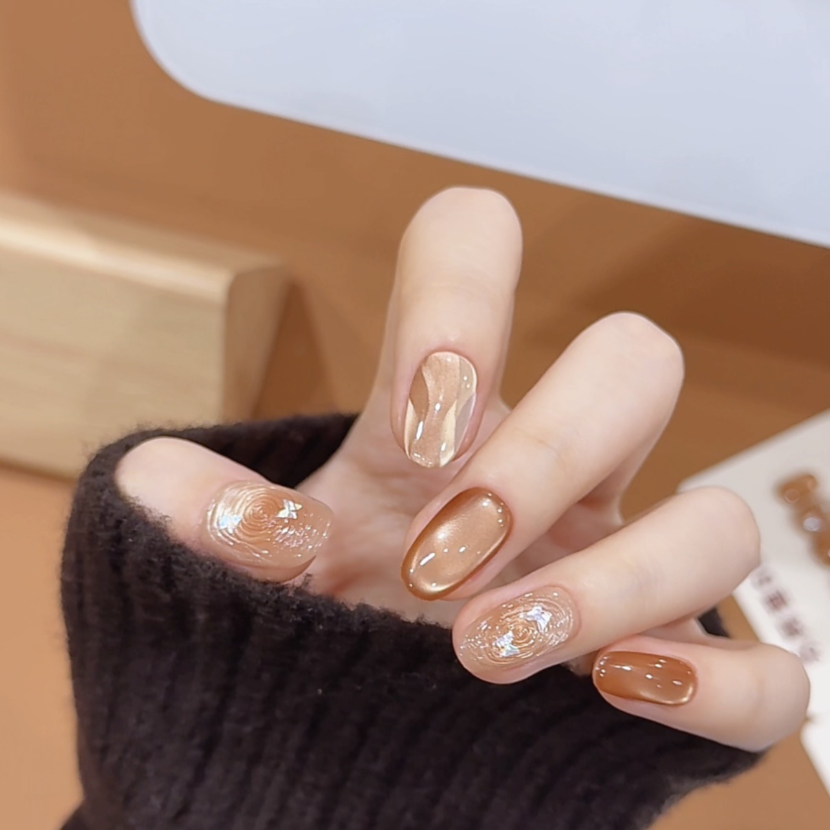 流转琥珀秋冬纯手工网红穿戴甲温柔气质显白假指甲成品美焦糖美甲