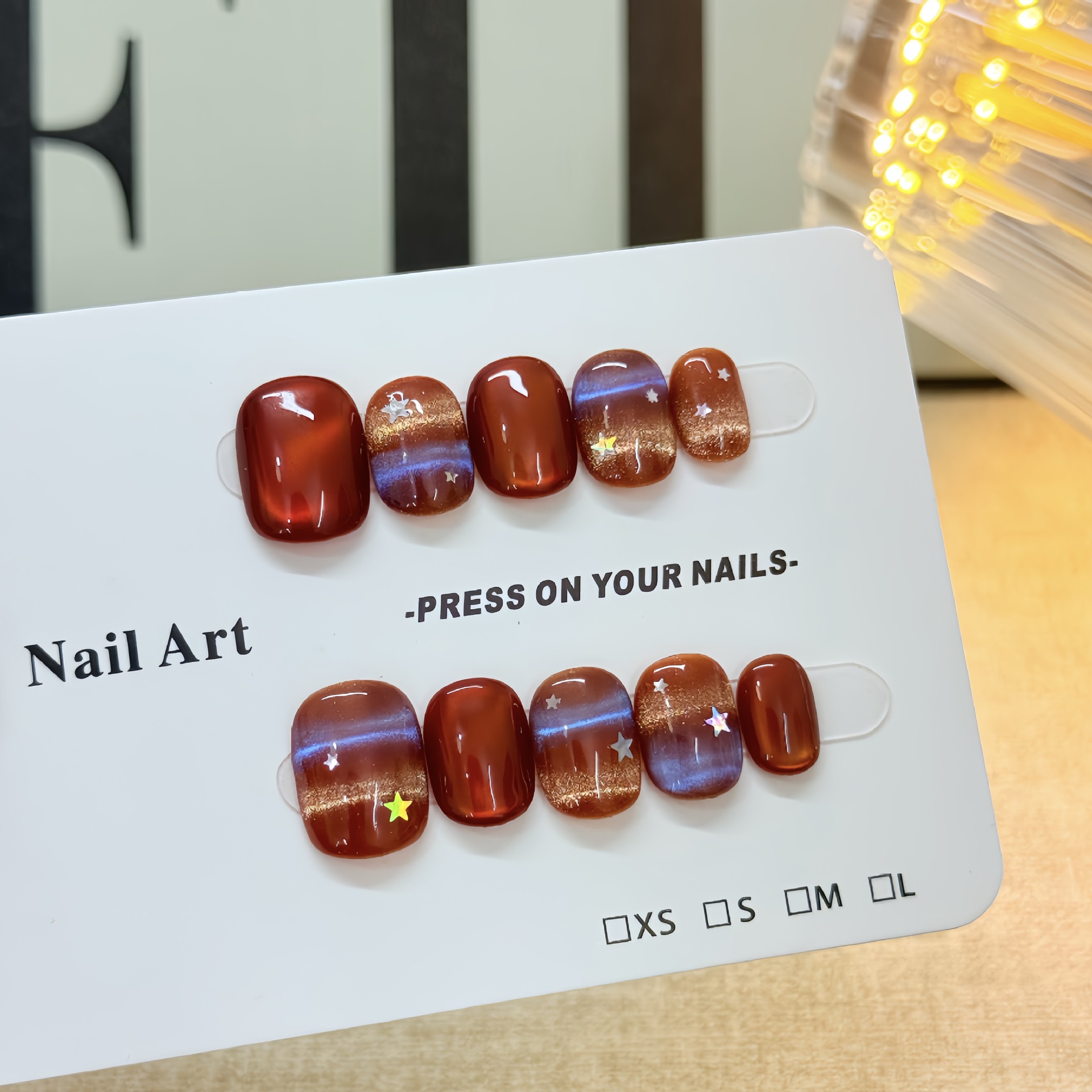 【梦幻星星】纯手工穿戴甲原创款式猫眼光疗甲横纹猫眼批发指甲贴