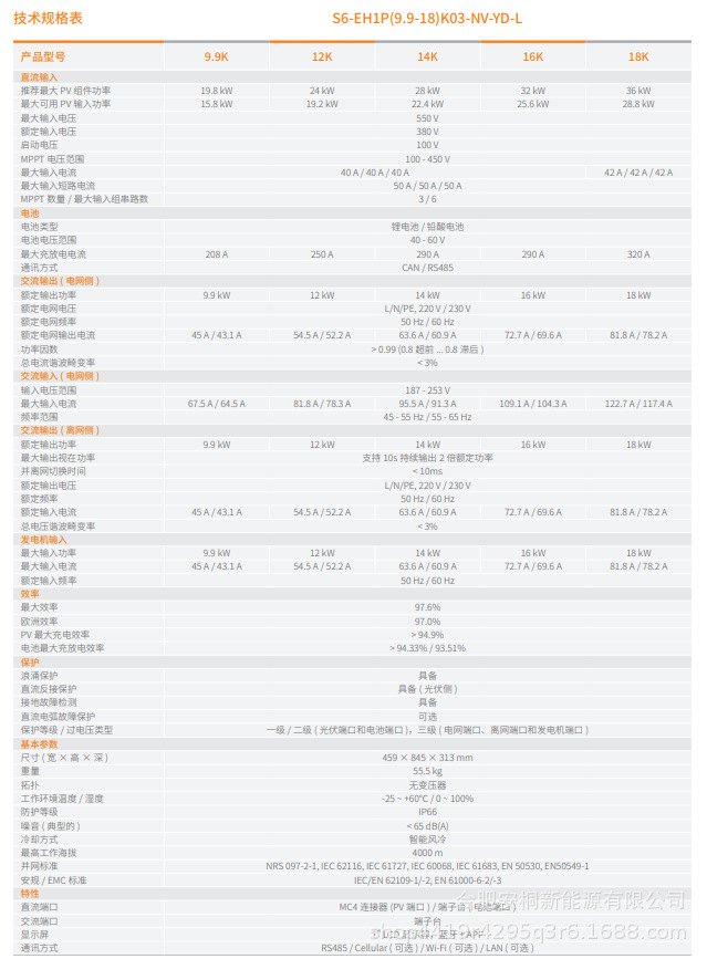 规格 S6-EH1P9.9K03-NV-YD-L,S6-EH1P12K03-NV-YD-L,S6-EH1P14K03-NV-YD-L,S6-EH1P16K03-NV-YD-L