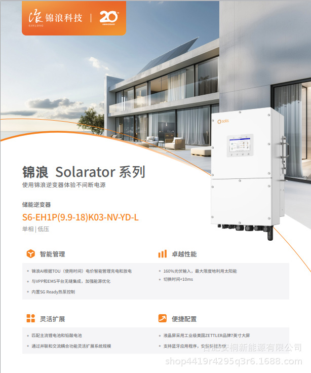 錦浪ソリス低電圧単相ハイブリッドインバーター5/6/8/10kw S6-EH1P(3-10)K-L-PLUS
