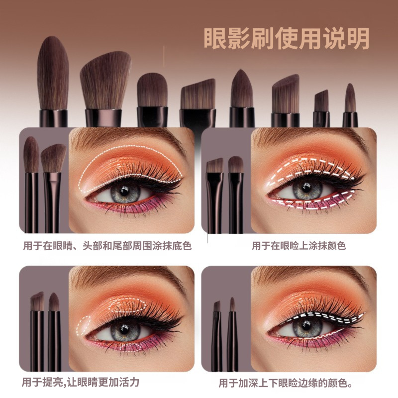 HG双头14支咖啡色化妆刷腮红刷现货带纸盒包装一件代发双头化妆刷