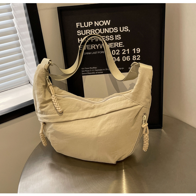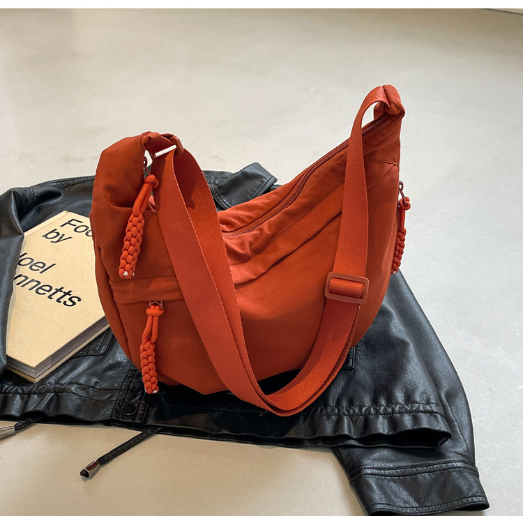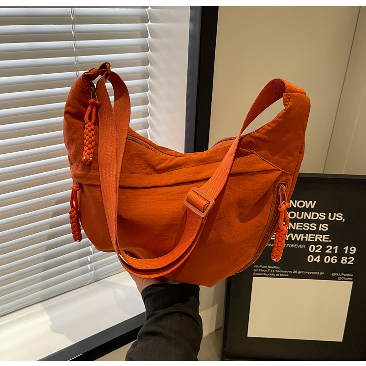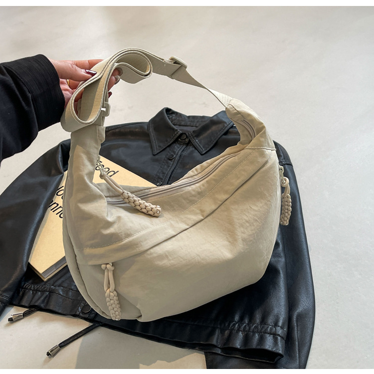 2025 ソリッドカラーのトレンド人格ショルダーバッグ女性のデイリーシンプルな団子バッグ多用途ナイロンクロスボディバッグ女性カジュアル