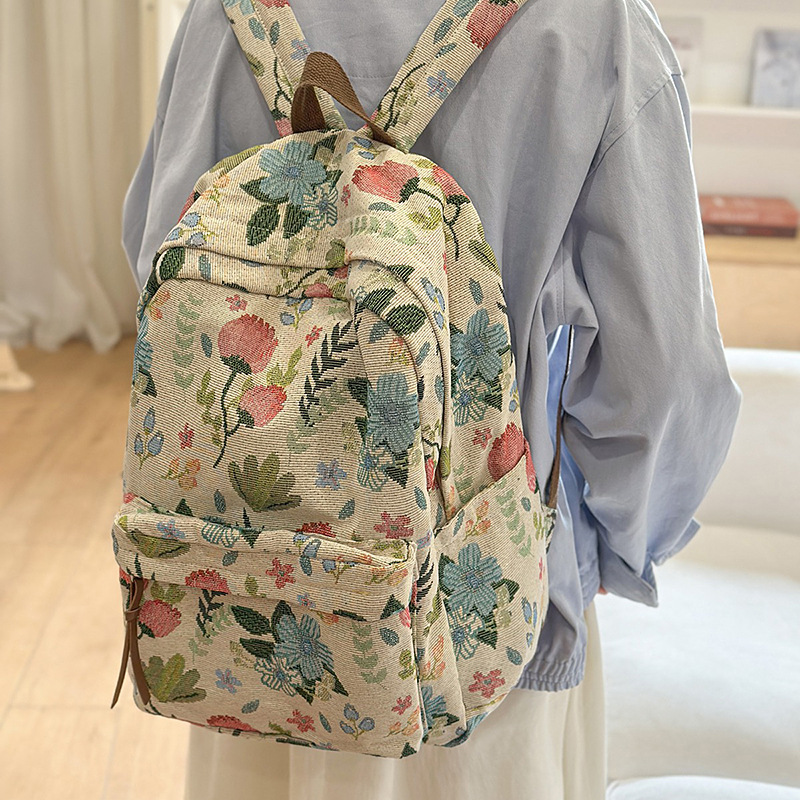 小さな新鮮な花柄学生スクールバッグ 2025 新しいファッションフラワーバックパック軽量カジュアル外出スポーツバックパック